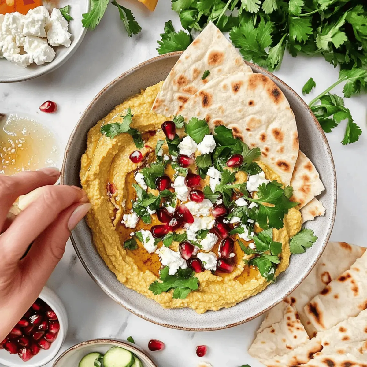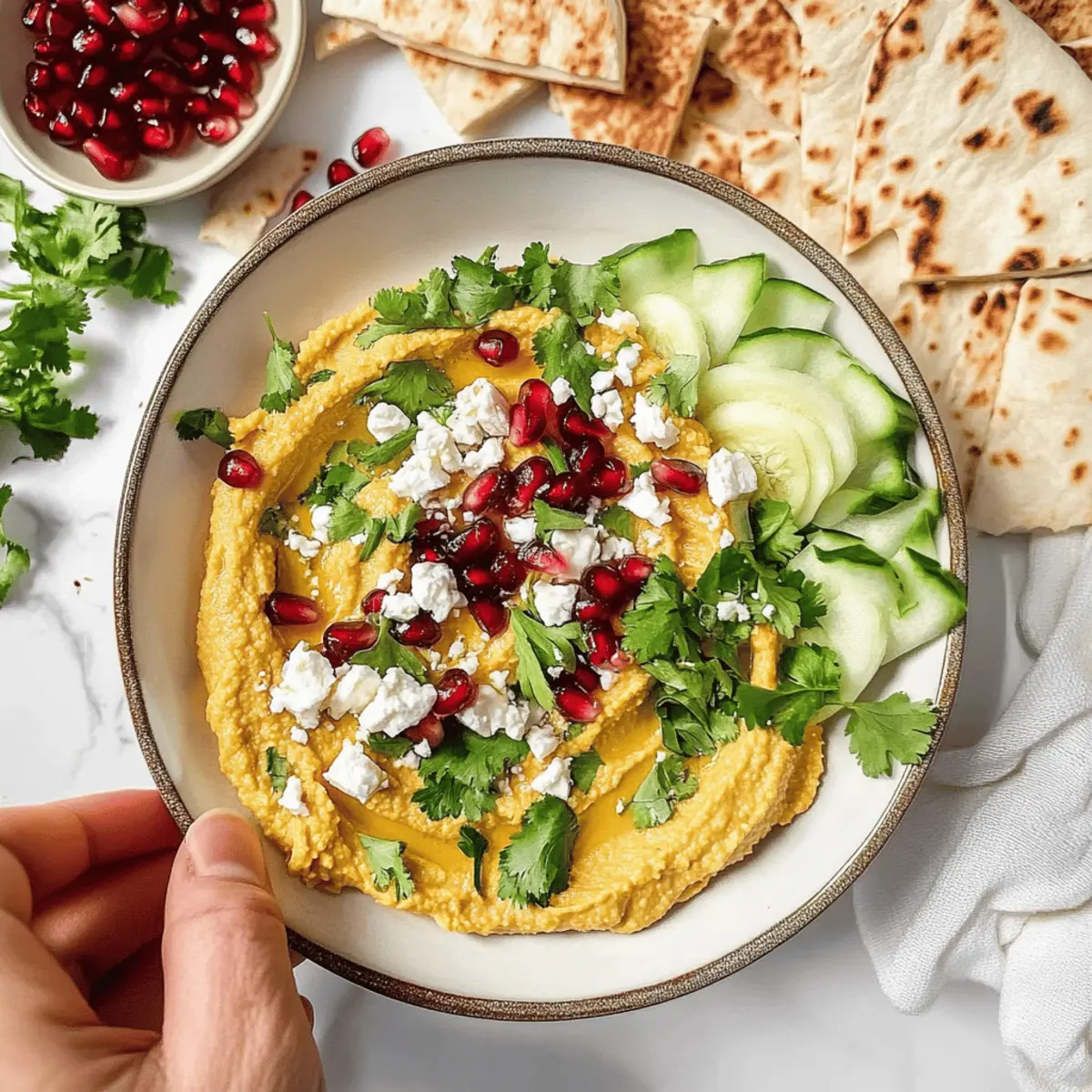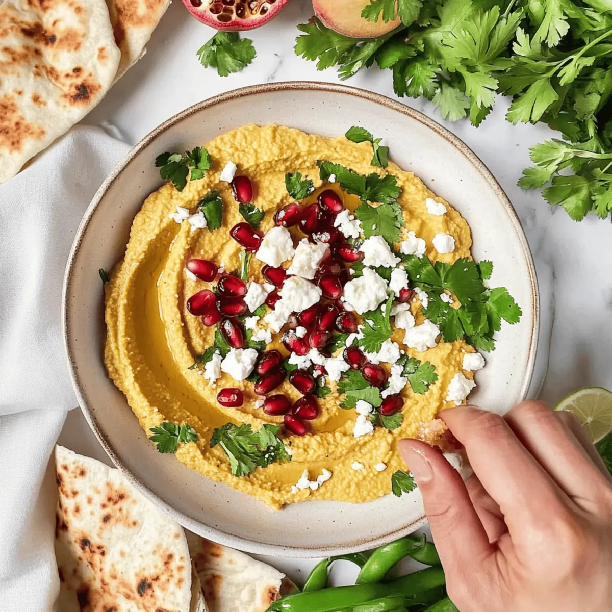 Jump to Recipe Print RecipeAs I stood in my kitchen, the warm aroma of roasting butternut squash filled the air, instantly transporting me to a cozy autumn day. This is the magic of my Butternut Squash Hummus with Feta & Pomegranates—a dish that captures the essence of the season. It’s not just a treat for the senses; this hummus is a vibrant, healthy appetizer that is perfect for holiday gatherings or when you simply want to elevate your snack game. With its creamy texture and the delightful crunch of pomegranate arils, this recipe is quick to prepare and caters to a variety of dietary preferences including vegetarian, vegan, and gluten-free. So, whether you’re a passionate home-chef or a busy foodie seeking healthier options, get ready to impress your guests with this colorful dip. Curious about how to create this festive delight? Let’s dive into the recipe! Why is this hummus so special? Deliciously Unique: This Butternut Squash Hummus combines sweet roasted squash with tangy feta for an irresistible flavor twist. Effortless Prep: With just a few simple steps, you’ll have a creamy, healthy appetizer that’s perfect for impressing guests or simply enjoying at home! Visual Appeal: The vibrant pomegranate arils sprinkled on top not only enhance the taste but make for a stunning presentation—a feast for the eyes! Versatile Options: Easily customized for dietary preferences; swap feta for nutritional yeast for a vegan treat or change up the toppings to match your taste! Crowd-Pleaser: From holiday gatherings to cozy nights in, this hummus is sure to be a hit, pairing beautifully with crackers or fresh veggies. Health Boost: Packed with fiber and antioxidants, this dish is as nutritious as it is delicious, making it a smart choice for snacking. Butternut Hummus with Feta Ingredients For the Hummus • Butternut Squash – Roasting enhances sweetness and creaminess, perfect for a smooth dip. • Garlic – Roasted whole to mellow its sharpness, adding aromatic depth. • Chickpeas – The base of the hummus, providing texture and protein—canned for convenience is ideal. • Tahini – Imparts nutty creaminess; avoid substitutions unless using a similar nut butter. • Lemon Juice – Freshly squeezed for the brightest flavor, balancing the dish beautifully. • Cumin & Coriander – Essential spices that deliver warmth and earthiness, crucial for the flavor. • Cayenne – A hint of heat! Adjust to suit your spice tolerance for the perfect kick. • Sea Salt – Enhances overall flavor; additional salt can be added when serving. • Extra-Virgin Olive Oil – Adds richness; drizzle on top for a luscious finish. For Topping • Pomegranate Arils – A burst of sweetness and vibrant color—dried cranberries can substitute if needed. • Feta Cheese – Optional yet tangy; omit for a vegan version of the Butternut Hummus with Feta & Pomegranates. • Chopped Parsley & Microgreens – For freshness and visual appeal, adding a touch of greenery. Step‑by‑Step Instructions for Butternut Hummus with Feta & Pomegranates Step 1: Preheat the Oven Begin by preheating your oven to 400°F (204°C). While waiting, line a baking sheet with parchment paper to prevent sticking. This ensures an easy clean-up and helps your roasted butternut squash and garlic come out perfectly golden and tender. Step 2: Prepare the Butternut Squash Dice your butternut squash into even cubes and place them in a mixing bowl. Drizzle with olive oil, season with sea salt and pepper, and toss until well-coated. Spread the seasoned squash in a single layer on the prepared baking sheet alongside wrapped whole garlic cloves to mellow their sharpness during roasting. Step 3: Roast the Vegetables Roast the butternut squash and garlic in the preheated oven for 20-25 minutes, or until the squash is tender and slightly browned. You’ll be able to tell it’s done when the edges caramelize, adding depth to the dish. Once the vegetables are roasted, remove them from the oven and allow them to cool slightly. Step 4: Blend the Ingredients In a food processor, combine the roasted butternut squash and garlic, drained chickpeas, tahini, freshly squeezed lemon juice, cumin, coriander, cayenne, and a pinch of sea salt. Pulse until the mixture is roughly combined, then scrape down the sides to ensure everything blends evenly. Step 5: Achieve the Right Consistency With the food processor running, slowly drizzle in some extra-virgin olive oil, allowing it to integrate with the hummus base. If needed, add a tablespoon of water at a time until you achieve a smooth and creamy consistency. Taste and adjust the salt or spices for your perfect Butternut Hummus with Feta & Pomegranates. Step 6: Serve and Garnish Transfer the creamy hummus to a serving bowl, creating a shallow well in the center. Generously top with vibrant pomegranate arils and crumbled feta cheese for a delightful mix of flavors. Finish with a drizzle of olive oil, and if desired, sprinkle with chopped parsley or microgreens for an added touch of freshness. How to Store and Freeze Butternut Hummus with Feta & Pomegranates Fridge: Keep your Butternut Hummus in an airtight container in the fridge for up to 5 days. The flavors will deepen over time, making it even more delicious! Freezer: You can freeze your hummus in an airtight container for up to 3 months. When ready to eat, let it thaw overnight in the fridge before serving. Reheating: For the best texture, gently stir and add a splash of olive oil to restore creaminess after thawing. Serving Tip: Top with fresh pomegranate arils and feta just before serving for an eye-catching, vibrant finish. Make Ahead Options These Butternut Squash Hummus with Feta & Pomegranates are perfect for meal prep! You can roast the butternut squash and garlic up to 3 days in advance and store them in an airtight container in the fridge to maintain their flavors. The hummus itself can be blended and refrigerated for up to 5 days, allowing 
