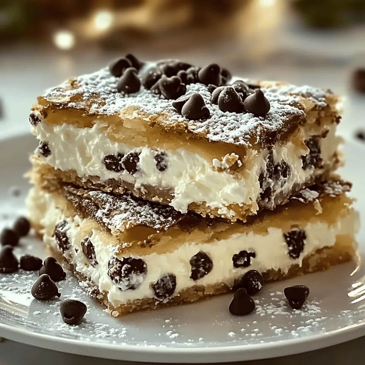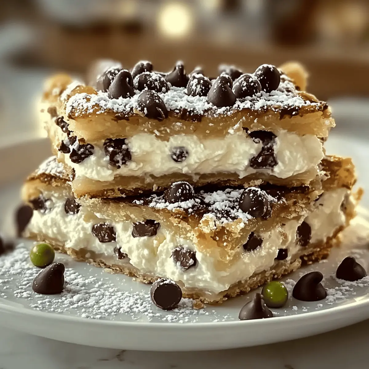 Jump to Recipe Print RecipeThere’s something incredibly nostalgic about the flavors that fill my kitchen when I’m making Classic Cannoli Squares. Just imagine a silky smooth ricotta filling nestled between two layers of golden crust, effortlessly merging Italian tradition with home-cooked comfort. This recipe is an absolute game changer—quick to prepare and customizable to fit any dietary need. Whether you’re hosting a gathering or simply treating yourself after a long day, these squares are sure to impress and delight, becoming a cherished addition to your dessert repertoire. Bonus: they’re easy to make ahead of time, making them perfect for busy days. Curious to learn how to whip up this delectable dessert? Let’s dive in! Why are Classic Cannoli Squares a must-try? Simplicity: This recipe is straightforward and quick, perfect for both novice and experienced bakers looking to impress. Crowd-Pleasing: With their familiar flavors and beautiful presentation, these squares are bound to please family and friends at any gathering. Customizable: Feel free to explore variations like dairy-free alternatives or unique flavors, ensuring everyone can indulge. Make-Ahead Friendly: Prepare them in advance for effortless serving at your next event or special dinner. Creamy and Crunchy: The delightful contrast of the silky filling against the flaky crust truly sets this dessert apart. For more fun variations, consider our take on traditional Italian desserts. Classic Cannoli Squares Ingredients For the Filling Ricotta Cheese – Use whole milk ricotta for a richer, creamier texture that enhances the flavor of the Classic Cannoli Squares. Powdered Sugar – Adds the necessary sweetness and helps achieve a smooth filling; coconut sugar works well as a healthy substitute. Vanilla Extract – Choose pure vanilla for the best aromatic flavor that elevates your filling. Cinnamon – Enhances the seasoning profile; feel free to omit it if you prefer the classic cannoli taste. Mini Chocolate Chips – Adds delightful chocolate notes and texture; dark chocolate will elevate the richness beautifully. For the Crust Pre-Made Pie Crusts – A time-saver that forms the delightful base; homemade crusts can be used if you prefer. Egg – Use for an egg wash to create a glossy and appealing finish on the top crust. Sugar – Sprinkle on top before baking for that added sweet crunch and lovely golden color. Optional Garnishes Chopped Pistachios – For a crunchy touch and vibrant color, adding a little something special for presentation. Maraschino Cherries – Adds a pop of color and sweetness for an inviting dessert finish. Step‑by‑Step Instructions for Classic Cannoli Squares Step 1: Prepare the Filling In a mixing bowl, combine rich whole milk ricotta, powdered sugar, vanilla extract, and a dash of cinnamon. Whisk everything together until the mixture is smooth and creamy, ensuring that no lumps remain. Stir in mini chocolate chips for delightful pops of flavor. This delectable filling will be the heart of your Classic Cannoli Squares, so take your time to blend well. Step 2: Preheat the Oven Set your oven to 375°F (190°C) to ensure that it’s perfectly heated for baking. Preheating is crucial, as it allows your Classic Cannoli Squares to rise nicely and achieve a golden crust. While the oven warms up, gather your baking equipment, including a 9×9-inch baking dish and a rolling pin if you’re using homemade crust. Step 3: Roll Out the Pie Crust If using pre-made pie crusts, simply place one crust in your greased baking dish, ensuring it covers the base evenly without any tears. If you’re making homemade crust, roll it out to fit the dish and carefully place it in. This sturdy foundation will hold the filling, so press it into the corners and edges, ready for the delicious ricotta mixture. Step 4: Add the Filling Spoon the silky ricotta mixture over the prepared crust, spreading it out evenly while leaving a small border around the edges. This will help create a lovely seal when you add the top crust. Visualize a comforting wave of creaminess, inviting you to indulge. Once evenly distributed, it’s time to top off your Classic Cannoli Squares. Step 5: Prepare the Top Crust Lay the second pie crust over the filling gently, ensuring it covers completely. Pinch the edges of the two crusts together to seal the filling in securely. Brush the top with a beaten egg for a golden finish, and sprinkle a light dusting of sugar for sweetness and crunch. This final touch ensures your Classic Cannoli Squares are as visually stunning as they are delicious. Step 6: Bake Carefully place the assembled dish into your preheated oven and bake for 30-35 minutes. Keep an eye on them as they bake; the top crust should turn golden brown and the filling will bubble slightly at the edges. This transformation is a sign that your Classic Cannoli Squares are close to perfection, so enjoy the sweet aroma wafting through your kitchen. Step 7: Cool and Serve Once your Classic Cannoli Squares are out of the oven, allow them to cool for at least 30 minutes. This cooling period helps the filling set, making cutting easier. After cooling, slice them into generous squares and consider garnishing with chopped pistachios or a cherry on top for extra flair. Indulge in the delightful combination of flavors! Classic Cannoli Squares Variations Get ready to explore delicious ways to adapt your Classic Cannoli Squares, ensuring they cater to every palate and dietary need! Dairy-Free: Replace ricotta with blended silken tofu and nutritional yeast for a creamy texture that captures the essence of cannoli. Gluten-Free: Opt for gluten-free pie crusts to enjoy all the flavors while accommodating those with gluten sensitivities. Flavor Boost: Mix in lemon zest for a citrus kick, or add almond extract for a nutty depth that enhances the filling. Fresh Fruit Layer: Incorporate layers of fresh fruit, like strawberries or raspberries, for added swe