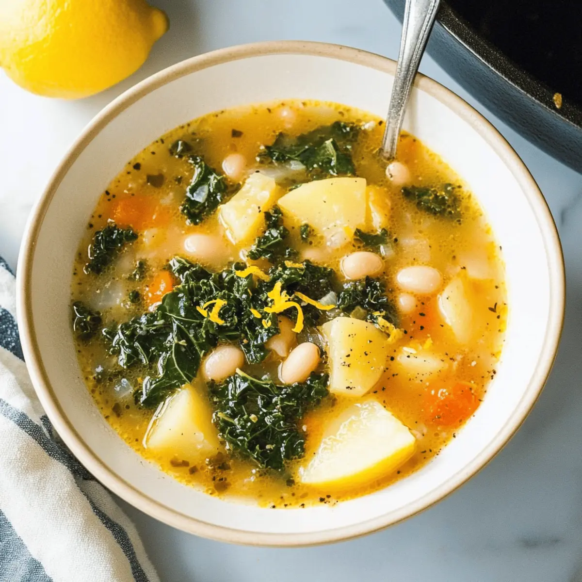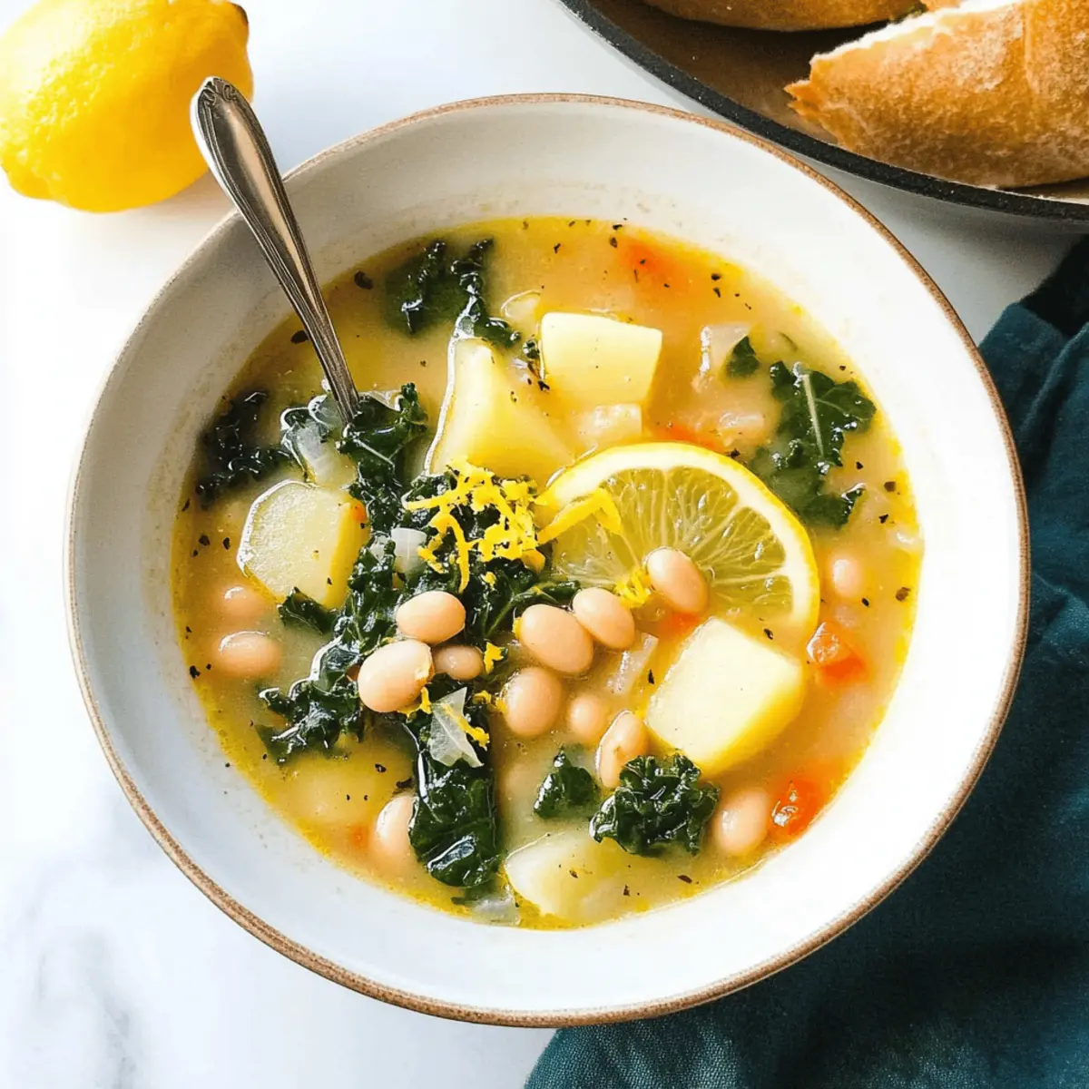 Jump to Recipe Print RecipeAs I simmered the ingredients in my favorite pot, the kitchen filled with a warm, inviting aroma that instantly lifted my spirits. This Cozy White Bean Soup is my go-to recipe for those hectic weeknights when time is of the essence but comfort food cravings still linger. Tantalizingly easy to prepare in just over 30 minutes, this vegan and gluten-free meal combines hearty white beans with vibrant kale, zesty lemon, and a hint of tarragon. Not only is this soup a delightful way to enjoy wholesome ingredients, but it also makes for a perfectly flexible canvas—feel free to swap in your favorite veggies! Whether you need a quick, satisfying dinner or a nourishing lunch for the next day, this dish guarantees warmth and satisfaction in every bowl. Are you ready to discover the magic of this vibrant soup recipe? Why is this Cozy White Bean Soup special? Comforting warmth: This soup delivers the ultimate cozy vibe, perfect for chilly nights. Quick preparation: With just over 30 minutes to cook, it fits seamlessly into your busy schedule. Wholesome ingredients: Packed with nutritious kale and hearty white beans, it’s both delicious and healthy. Versatile choices: You can easily switch up the veggies or protein, making it a fun and flexible meal. Crowd-pleaser: This delightful recipe is sure to win over family and friends, whether served on a weeknight or at a gathering. For even more cozy inspirations, check out my Cabbage Potato Soup or Garlic Potato Soup for heartwarming meals. Cozy White Bean Soup Ingredients For the Base • Canned White Beans – The primary base for your soup, offering creaminess and protein; choose cannellini, navy, or great northern beans. • Potatoes – Adds a hearty texture; Yukon Gold or red potatoes work best for a creamy finish. • Vegetable Broth – This liquid forms the flavorful foundation; opt for low-sodium to manage salt levels. For the Greens • Kale – Pack your soup with nutrients and color; substitute spinach for a milder taste if desired. For Brightness • Lemon Zest – Infuses the soup with a refreshing kick; if you don’t have zest on hand, fresh lemon juice can also do the trick. For Flavor • Dried Tarragon – Adds a unique herbal note to the dish; in a pinch, dry sage or thyme can serve as suitable substitutes. Feel free to explore the magic of this Cozy White Bean Soup and make it your own by experimenting with different vegetables! Step‑by‑Step Instructions for Cozy White Bean Soup Step 1: Prepare Ingredients Begin by washing and chopping your kale into bite-sized pieces, setting it aside. Next, peel and dice the potatoes into small cubes to ensure even cooking. Finally, gather and drain your canned white beans, keeping everything organized for a smooth cooking process as you create your delicious Cozy White Bean Soup. Step 2: Sauté Vegetables In a large pot over medium heat, drizzle in a splash of olive oil. Once heated, add the chopped onions and sauté until they’re translucent, about 5 minutes. Stir occasionally to prevent sticking, letting the sweet aroma fill your kitchen as the onions become soft, setting the stage for the comforting flavors of your Cozy White Bean Soup. Step 3: Add Key Ingredients Now, add the diced potatoes to the pot, stirring to combine with the sautéed onions. Pour in the vegetable broth and add the drained white beans, followed by the lemon zest and dried tarragon. Bring the mixture to a gentle boil, allowing the ingredients to dance together beautifully while the vibrant aromas begin to emerge from your Cozy White Bean Soup. Step 4: Cook Soup Reduce the heat to a simmer, leaving the pot uncovered for about 20 minutes. You’ll want to keep an eye on the mixture, stirring occasionally until the potatoes are fork-tender and the soup is bubbling softly. The flavors will meld together wonderfully, creating a nourishing base for your freshly prepared Cozy White Bean Soup. Step 5: Blend Partially Using an immersion blender, blend the soup partially, blending only about a third of it for a creamy texture while still leaving some hearty chunks. If you prefer, you can also mash some beans with a fork. This step will create a cozy, inviting consistency that balances creamy and rustic elements in your Cozy White Bean Soup. Step 6: Finish with Kale Stir in the chopped kale, allowing it to wilt in the hot broth, which should take just a couple of minutes. Once the kale is bright green and tender, taste the soup and adjust the seasoning as necessary. Your Cozy White Bean Soup is now ready to be ladled into bowls, perfect for serving hot and warming up your evenings. How to Store and Freeze Cozy White Bean Soup Fridge: Store your Cozy White Bean Soup in an airtight container for up to 3 days. It may thicken, so add a splash of water or broth when reheating. Freezer: Freeze the soup for up to 3 months in a freezer-safe container. Leave some space at the top for expansion, ensuring it stays fresh upon defrosting. Reheating: Reheat on the stovetop over medium heat, stirring occasionally. If it’s too thick, stir in a bit of vegetable broth or water until you reach your desired consistency. Meal Prep: Portion out the soup into single servings before freezing for easy meals whenever you crave a comforting bowl. Make Ahead Options These Cozy White Bean Soup meal prep options are perfect for busy home cooks! You can chop all your vegetables, including kale and potatoes, up to 24 hours in advance. Store them in an airtight container in the fridge to keep them fresh and prevent browning. Additionally, you can prepare the soup base (sans kale) and refrigerate it for up to 3 days. When you’re ready to enjoy, simply reheat the soup on the stove, adding a little vegetable broth if necessary, and stir in the kale until wilted. This way, your delicious and nutritious Cozy White Bean Soup will be just as satisfying with minimal effort! Cozy White Bean Soup Variations Feel free to transform this re