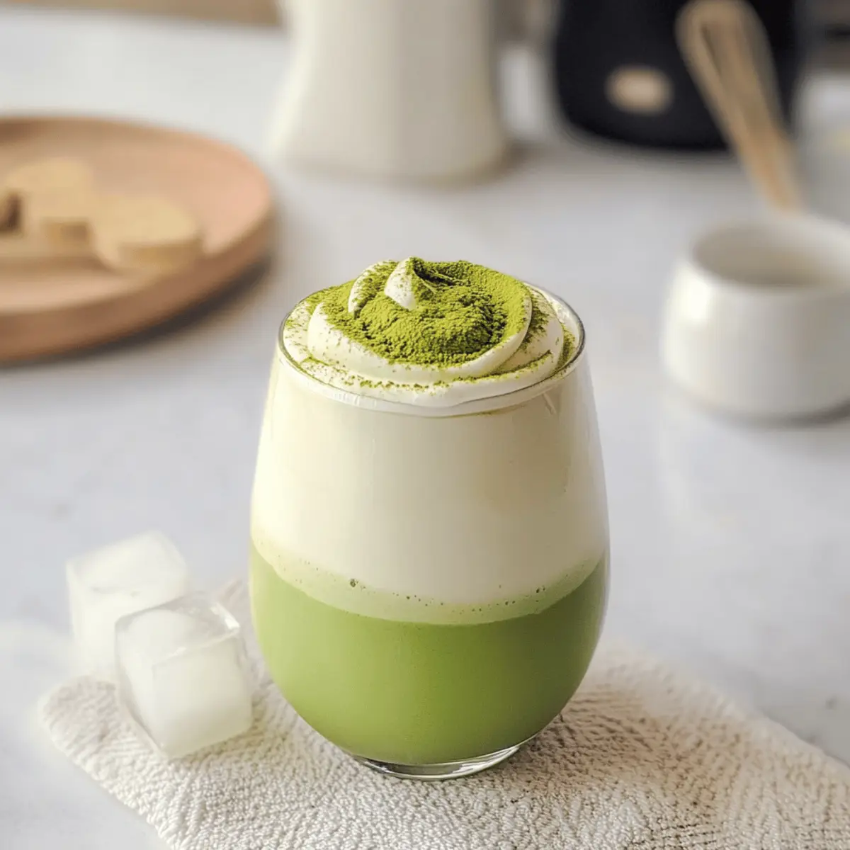 Jump to Recipe Print RecipeSipping on a frothy Dalgona Matcha can transport you straight to a cozy café, with its creamy, whipped texture and vibrant green color making it irresistible. Inspired by trendy Korean dalgona coffee, this delightful matcha variation is not only a feast for the eyes, but it’s also a quick-to-make treat that can be enjoyed with various frothing agents, including a light and airy vegan option. In just 10 minutes, you can elevate your afternoon routine or impress guests with this delightful drink, perfect for both hardcore matcha lovers and curious newcomers alike. Are you ready to whip up something uniquely delicious? Let’s dive into this recipe and unlock the secrets of creating your own Dalgona Matcha at home! Why Is Dalgona Matcha So Special? Indulgent, velvety foam: The whipped matcha topping creates a light yet rich experience, making each sip a treat. Quick preparation: In just 10 minutes, you can transform your kitchen into a café! Vegan-friendly options: With choices like aquafaba or coconut cream, everyone can indulge without compromise. Versatile flavor: Adjust sweetness or explore different milk alternatives to suit your taste; try it over a creamy matcha latte for depth. Fun presentation: The striking contrast of frothy green cream over milky white is perfect for impressing guests or brightening your day. Pair it with a refreshing drink like a Coconut Matcha Cooler for a delightful afternoon pick-me-up! Dalgona Matcha Ingredients • Get ready to whip up a delightful Dalgona Matcha with these key ingredients. For the Whipped Cream Heavy Cream – Provides a rich, creamy texture for the whipped topping. Substitution: Use coconut cream for a vegan option. Japanese Green Tea Powder (Matcha) – The key flavor component that offers a vibrant color and earthy taste. Note: Ceremonial-grade is preferred for sweetness and color. White Sugar – Adds sweetness and stability to the whipped texture. Note: Can substitute with powdered sugar or sugar syrup; alternatives include honey or maple syrup. For the Drink Base Milk – Acts as the base for the drink, balancing flavors and creating a smooth texture. Substitution: Almond or oat milk for dairy-free options; coconut milk recommended for richness. Ice – Chills the drink and enhances refreshment. Optional based on serving preference. Get ready to delight your senses with this luscious Dalgona Matcha—a quick and indulgent treat that’s sure to impress! Step‑by‑Step Instructions for Dalgona Matcha Step 1: Combine Ingredients In a small mixing bowl, add heavy cream and Japanese green tea powder (matcha). Using an electric mixer, whisk at medium speed for about 3-5 minutes until medium peaks form—this should create a creamy, fluffy texture. If whisking by hand, be prepared for a workout, as it will take around 10 minutes to reach those delightful peaks. Step 2: Sweeten the Cream Gradually incorporate white sugar into the whipped matcha mixture. With a spatula, gently fold the sugar in until it is fully dissolved and combined, creating a smooth, sweetened whipped cream. The sugar not only adds sweetness but also stability, ensuring your Dalgona Matcha retains its airy texture. Step 3: Prepare the Glass While your whipped matcha cream is coming together, grab a tall glass and fill it with ice cubes. Pour in your choice of milk, leaving some space at the top for the whipped matcha. The chilled milk serves as a refreshing base for your vibrant Dalgona Matcha, enhancing the overall experience. Step 4: Assemble Your Dalgona Matcha Once your whipped matcha cream is ready, use a spoon to dollop it generously over the milk in your glass. The contrast of the frothy green topping against the milky base is not only visually appealing, but it also creates a delightful layered drink. Step 5: Serve and Enjoy To enjoy your Dalgona Matcha, gently stir the whipped top into the milk for a balanced flavor. Take a moment to admire the beautiful layers before indulging in this creamy delight. Sip and savor the unique blend of richness from the whipped cream and the earthy tones of the matcha in every delightful sip. What to Serve with Vegan Dalgona Matcha Latte Delight your senses with complementary flavors and textures that elevate your Dalgona Matcha experience! Creamy Coconut Rice: This lightly sweet and creamy coconut rice provides a wonderful balance with the earthy notes of matcha. Fruity Matcha Smoothie Bowl: Top a refreshing smoothie bowl with fresh fruits and granola for a nutritious breakfast or afternoon snack, pairing beautifully with the matcha’s richness. Chocolate Biscotti: The crunchy chocolate biscotti adds a delightful contrast while the chocolate brings out the subtle sweetness of the Dalgona Matcha. Sesame Cookies: These chewy, nutty cookies offer a perfect texture contrast and the warm hints of sesame enhance the green tea’s flavor. Chia Seed Pudding: A light, creamy chia pudding topped with seasonal fruits offers a nutritious and fun complement, enhancing the drink’s visual appeal. Ginger Lemonade: This invigorating drink, with its zesty notes, cuts through the creaminess and refreshes your palate with each sip. Almond Croissant: Buttery and flaky, an almond croissant is an indulgent treat that pairs wonderfully with the whipped matcha’s smooth texture. Coconut Macaroons: These sweet, chewy delights add a tropical flair and their nutty, sweet flavor provides a lovely contrast to the matcha’s earthiness. Sparkling Green Tea: For a refreshing twist, serve a light sparkling green tea infused with mint, which enhances the matcha’s herbal notes while uplifting your palate. Expert Tips for Dalgona Matcha Whipping Technique: Use an electric mixer whenever possible for quicker results; hand whisking can be tiring and time-consuming. Peak Perfection: Aim for medium peaks when whipping your matcha cream: too stiff leads to a dense foam, while soft peaks make for a lighter drink. Aquafaba Alternati