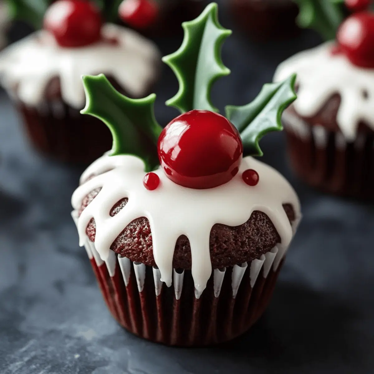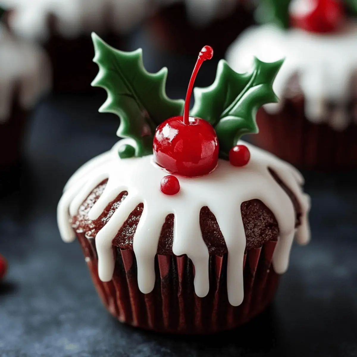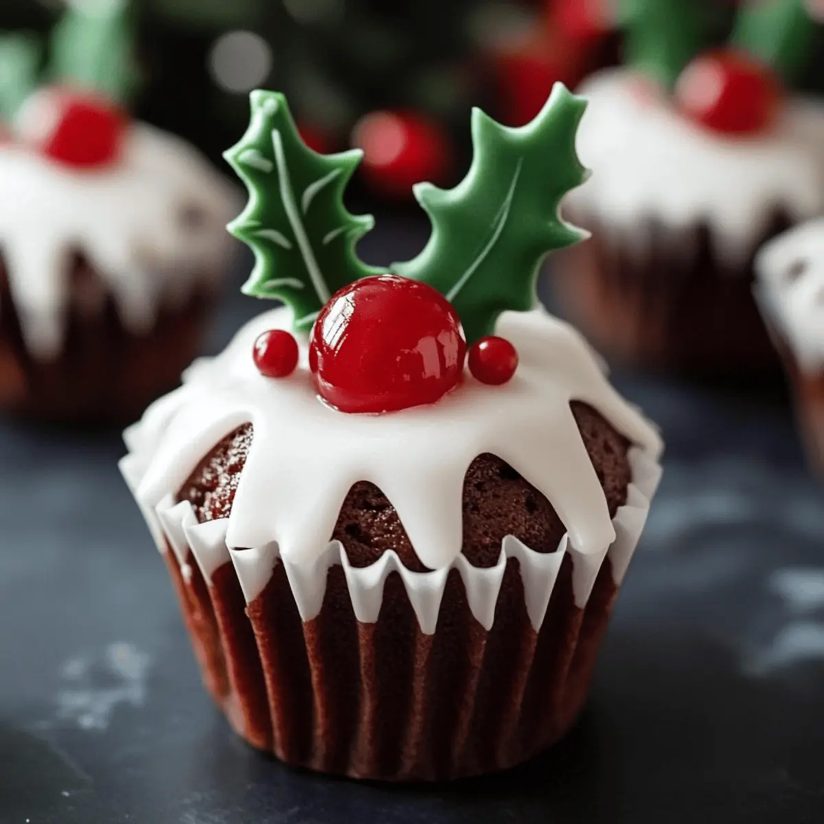 Jump to Recipe Print RecipeThe smell of spices wafting through the kitchen is a sure sign that the holidays are upon us! I find joy in holiday baking, and what brings that cheer better than Festive Christmas Pudding Cupcakes? These little delights capture the essence of the season, combining the sweetness of dried fruits with a hint of warmth from spices, all cloaked in a luscious vanilla glaze. Not only are they a whimsical twist on traditional Christmas desserts, but they’re also incredibly easy to whip up, making them perfect for last-minute gatherings or cozy family nights. Plus, with the option to soak the fruits in brandy or orange juice, you can tailor these cupcakes to fit any celebration. Ready to indulge your holiday spirit? Why Choose Christmas Pudding Cupcakes? Deliciously festive: These cupcakes are a joyful tribute to the holiday season, melding flavors that evoke the spirit of Christmas. Easy to make: With simple ingredients and straightforward instructions, you can create these delightful treats without extensive baking skills. Customizable flavors: Opt for brandy or orange juice to soak your fruits, making them adaptable for both adult and family-friendly gatherings. Stunning presentation: The shiny vanilla glaze and festive decorations elevate your dessert table, ensuring they’re a showstopper at any holiday event. Moist and fluffy texture: The blend of dried fruits and spices yields cupcakes that are both light and moist, satisfying every sweet tooth. Perfectly paired, serve these cupcakes alongside Avocado Bruschetta for a balanced holiday spread or alongside some classic Bake Chia Pudding for dessert lovers! Festive Christmas Pudding Cupcake Ingredients • Here’s what you need to bake these delightful holiday treats! For the Batter All-purpose flour – Essential for cupcake stability. Baking powder – Ensures cupcakes rise properly for a light texture. Baking soda – Works with acidic ingredients to add lightness. Ground cinnamon – Provides the warm, cozy flavor of holiday baking. Ground nutmeg – Enhances the rich spice profile of your cupcakes. Ground cloves – Adds depth and a comforting holiday aroma. Unsalted butter – Use softened for easy creaming and rich moisture. Brown sugar – Brings sweetness and moisture with a delightful caramel-like flavor. Eggs – Essential for binding ingredients and providing structure. Vanilla extract – Adds a sweet, aromatic quality that complements the festive flavors. Whole milk – Provides moisture; feel free to substitute with a non-dairy alternative. Mixed dried fruit (raisins, currants, chopped dried apricots) – Soak to enhance sweetness and texture. For Soaking the Fruit Brandy or orange juice – Use brandy for a sophisticated touch or orange juice for a family-friendly option. For the Glaze Powdered sugar – Creates a sweet glaze with a smooth texture. Milk (for glaze) – Adjusts the consistency of the glaze for easy drizzling. For Decoration Maraschino cherries – Adds a festive touch to your cupcakes. Edible holly leaves – Use fondant or marzipan to create a beautiful holiday aesthetic. Gather these ingredients to bring the warmth of the holidays to your kitchen with these Festive Christmas Pudding Cupcakes! Step‑by‑Step Instructions for Festive Christmas Pudding Cupcakes Step 1: Soak the Dried Fruit Start by soaking your mixed dried fruit in either brandy or orange juice. Place the fruit in a bowl, covering it with the liquid, and let it sit for at least 30 minutes, or ideally overnight, for deeper flavor. This process softens the fruit and enhances the overall taste, preparing them perfectly for your Festive Christmas Pudding Cupcakes. Step 2: Prepare the Batter In a large mixing bowl, cream together the softened unsalted butter and brown sugar until the mixture is light and fluffy, about 3-5 minutes. This step is crucial for achieving the desired airy texture in your cupcakes. Use an electric mixer for best results, making sure there are no lumps and everything is well-combined. Step 3: Incorporate Eggs and Vanilla Once the butter and sugar are creamed, add the eggs one at a time, mixing until fully integrated after each addition. Next, mix in the vanilla extract until fragrant. This creates a cohesive batter base for your Festive Christmas Pudding Cupcakes, ensuring moisture and flavor are evenly distributed throughout. Step 4: Fold in Dry Ingredients In a separate bowl, whisk together the all-purpose flour, baking powder, baking soda, ground cinnamon, ground nutmeg, and ground cloves until well combined. Gradually add the dry mixture to the wet ingredients, alternating with whole milk. Mix until just combined—overmixing will affect the lightness of your cupcakes, so aim for a smooth batter without lumps. Step 5: Add Soaked Dried Fruits Carefully fold in the soaked dried fruits into the batter, ensuring you drain any excess liquid first. Use a spatula to gently incorporate the fruit, maintaining the light texture of your mixture. This step not only enhances the flavor of your Festive Christmas Pudding Cupcakes but also adds delightful bursts of sweetness in each bite. Step 6: Bake the Cupcakes Preheat your oven to 350°F (175°C). Line a muffin tin with cupcake liners and fill each liner about two-thirds full with batter. Bake in the preheated oven for about 18-22 minutes, or until a toothpick inserted in the center comes out clean. Keep an eye on them; they should be golden brown and spring back when lightly touched. Step 7: Cool the Cupcakes Once baked, let the cupcakes cool in the muffin tin for about 5 minutes. Then, gently transfer them to a wire rack to cool completely. It’s essential to allow them to cool fully before frosting, as this prevents the glaze from melting and ensures a beautiful finish for your Festive Christmas Pudding Cupcakes. Step 8: Make the Vanilla Glaze While the cupcakes cool, prepare the vanilla glaze. In a mixing bowl, whisk together powdered sugar, a s