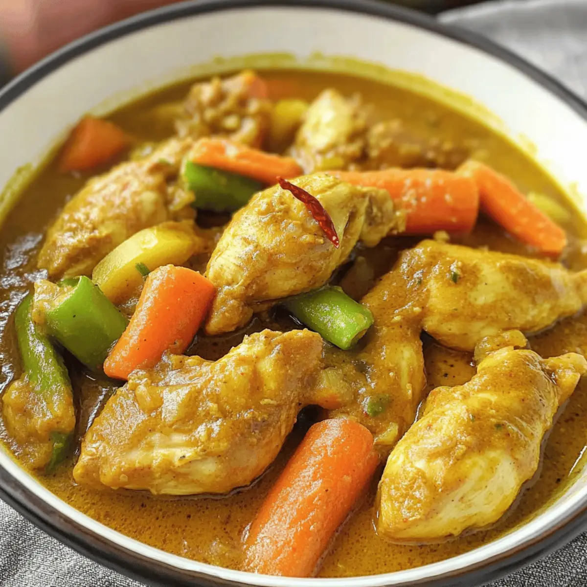 The comforting aroma of this rich chicken curry pairs beautifully with a variety of delicious sides, enhancing your dining experience.
