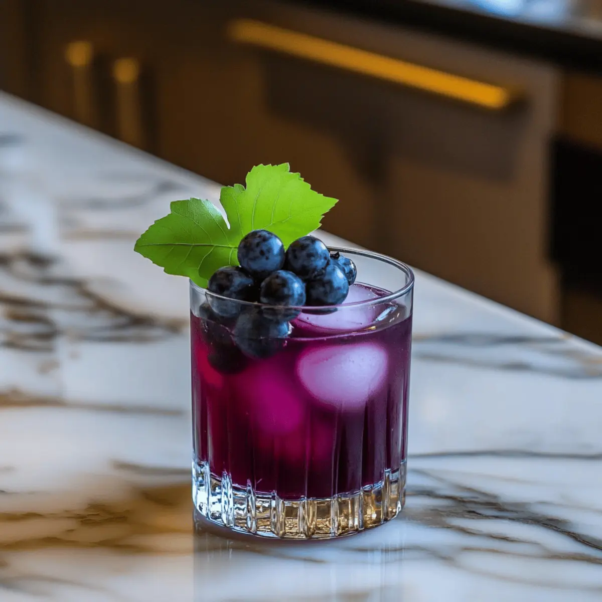 Top off your Ghoulish Grape Juice Mocktail with fresh blueberries, sliced green grapes, and mint leaves. The garnishes not only add a pop of color but also bring aromatic freshness to each sip. Take a moment to admire your beautifully crafted mocktail.