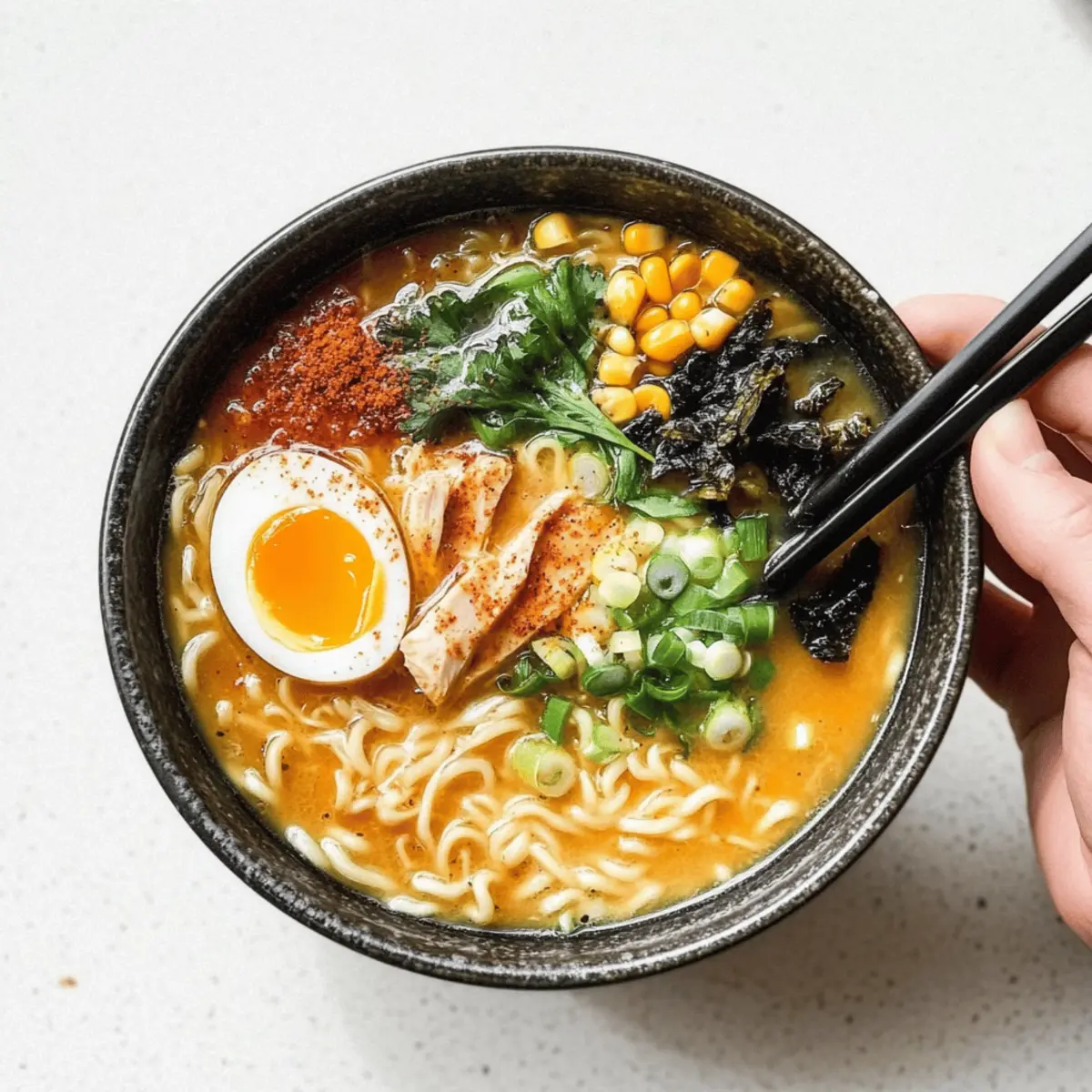 Jump to Recipe Print RecipeOn one of those chilly evenings when the world outside is draped in a soft blanket of frost, a bowl of steaming Healthy Miso Ramen with Chicken can transform the most mundane night into a comforting culinary experience. This vibrant dish boasts a rich tomato miso soup that wraps you in warmth and flavor, making it the ultimate comfort food that’s also family-friendly. With a few simple steps, you can whip up a nourishing meal that’s quick and easy, perfect for busy weeknights. Plus, it offers endless customization opportunities! Want a vegan version or extra crunch? You can adapt this ramen to suit everyone’s taste. So, are you ready to dive into the soul-soothing world of homemade ramen? Why is this ramen recipe a must-try? Comforting Warmth: This Healthy Miso Ramen with Chicken guarantees a bowl of warmth on chilly nights, perfect for cozy family dinners. Quick to Prepare: With just a few ingredients and simple steps, you can whip this meal together in no time, ideal for busy weeknights. Customizable Delights: Whether you’re craving a vegan option or want to mix in your favorite toppings, this recipe offers limitless versatility to suit everyone’s preference. Flavor Packed: The umami-rich tomato miso base creates an explosion of flavors that will have your taste buds rejoicing! Nutritional Boost: Packed with protein from the chicken and vitamins from the vegetables, this dish is both nutritious and satisfying, making it a guilt-free indulgence. Experimenting with variations like Fiery Chicken Ramen or Mango Chicken Stir Fry may also inspire many delightful dinners! Healthy Miso Ramen with Chicken Ingredients For the Tomato Miso Soup Base Miso Paste – Adds depth and umami flavor; substitute with soy sauce for a less intense flavor. Onion – Provides sweetness and structure; use shallots for a milder flavor. Tomato – Delivers acidity and sweetness; fresh tomatoes can be swapped for canned for convenience. Garlic – Enhances aroma and savory notes; adjust to taste for a milder garlic flavor. Ginger – Adds warmth and slight spice; FRESH is preferred for the best flavor. Vegetable Broth – Forms the base of the soup; chicken broth can be used for a richer taste. For the Marinated Chicken Breast Chicken Breast – Main protein source; can replace with tofu for a vegetarian version. Soy Sauce – Provides savory notes; tamari for gluten-free options. Sesame Oil – Adds nuttiness; olive oil can be used as a substitution if unavailable. For the Ramen Toppings Ramen Egg – Soft-boiled egg garnishing for richness; can omit for a vegan option. Scallions – Freshness and crunch; can substitute with chives or omit if unavailable. Seaweed (Nori) – Adds an oceanic flavor; skip if not preferred. Carrots – Offers sweetness and texture; swap with bell peppers for variety. Sweet Corn – Adds sweetness; can also use peas as an alternative. Step‑by‑Step Instructions for Healthy Miso Ramen with Chicken Step 1: Prepare the Soup Base Start by heating a large pot over medium heat and adding a splash of oil. Sauté chopped onions, minced garlic, and grated ginger for about 3-4 minutes until fragrant and translucent. Stir in the miso paste together with diced tomatoes and pour in the vegetable broth. Allow the mixture to simmer for 20 minutes, stirring occasionally, until the flavors meld beautifully into a rich tomato miso soup base. Step 2: Marinate and Cook Chicken While the soup simmers, prepare the marinated chicken. In a bowl, whisk together soy sauce and sesame oil. Coat the chicken breast thoroughly with the marinade and let it sit for about 10 minutes to absorb the flavors. In the meantime, heat an air fryer or skillet to medium-high heat, then cook the chicken for 6-7 minutes per side, or until golden brown and fully cooked, reaching an internal temperature of 165°F (74°C). Step 3: Cook Ramen Noodles Once the chicken is cooking, bring a separate pot of water to a boil. Add the ramen noodles and cook according to package instructions, usually around 3-4 minutes until tender. Once cooked, drain the noodles and rinse them briefly under cold water to stop the cooking process, ensuring they remain perfectly chewy in your Healthy Miso Ramen with Chicken. Step 4: Assemble Ramen Bowls Now it’s time to put your delicious meal together! Divide the cooked ramen noodles evenly into serving bowls. Pour the hot tomato miso soup over the noodles, ensuring they’re adequately submerged. Slice the marinated chicken and arrange it on top of the noodles, allowing the flavors to mingle in each bowl of ramen. Step 5: Add Toppings Finally, bring your Healthy Miso Ramen with Chicken to life with vibrant toppings. Garnish with soft-boiled ramen eggs, chopped scallions, strips of nori, sliced carrots, and sweet corn as desired. Let your creativity shine by customizing the toppings based on your family’s preferences or seasonal veggies, transforming each bowl into a delightful and nourishing experience. Storage Tips for Healthy Miso Ramen with Chicken Fridge: Store the soup base and marinated chicken separately in airtight containers for up to 3 days to maintain freshness and flavor. Freezer: For longer storage, freeze the soup base in a freezer-safe container for up to 3 months. Thaw in the fridge before reheating. Reheating: When ready to enjoy, reheat the soup gently on the stove or in the microwave until steaming, then assemble with freshly cooked ramen and toppings. Leftover Toppings: If you have leftover garnishes, store them separately in the fridge and use them within 2 days for the best texture and taste in your Healthy Miso Ramen with Chicken. Tips for the Best Healthy Miso Ramen Flavor Development: Use fresh ingredients and let the soup simmer long enough to unlock all the rich flavors in your Healthy Miso Ramen with Chicken. Egg Perfection: For a beautifully runny ramen egg, cook it for just 6-7 minutes. This creates a creamy yolk that enhances your bow