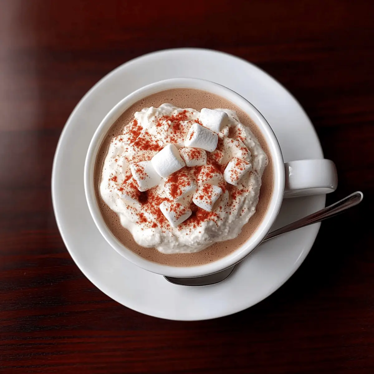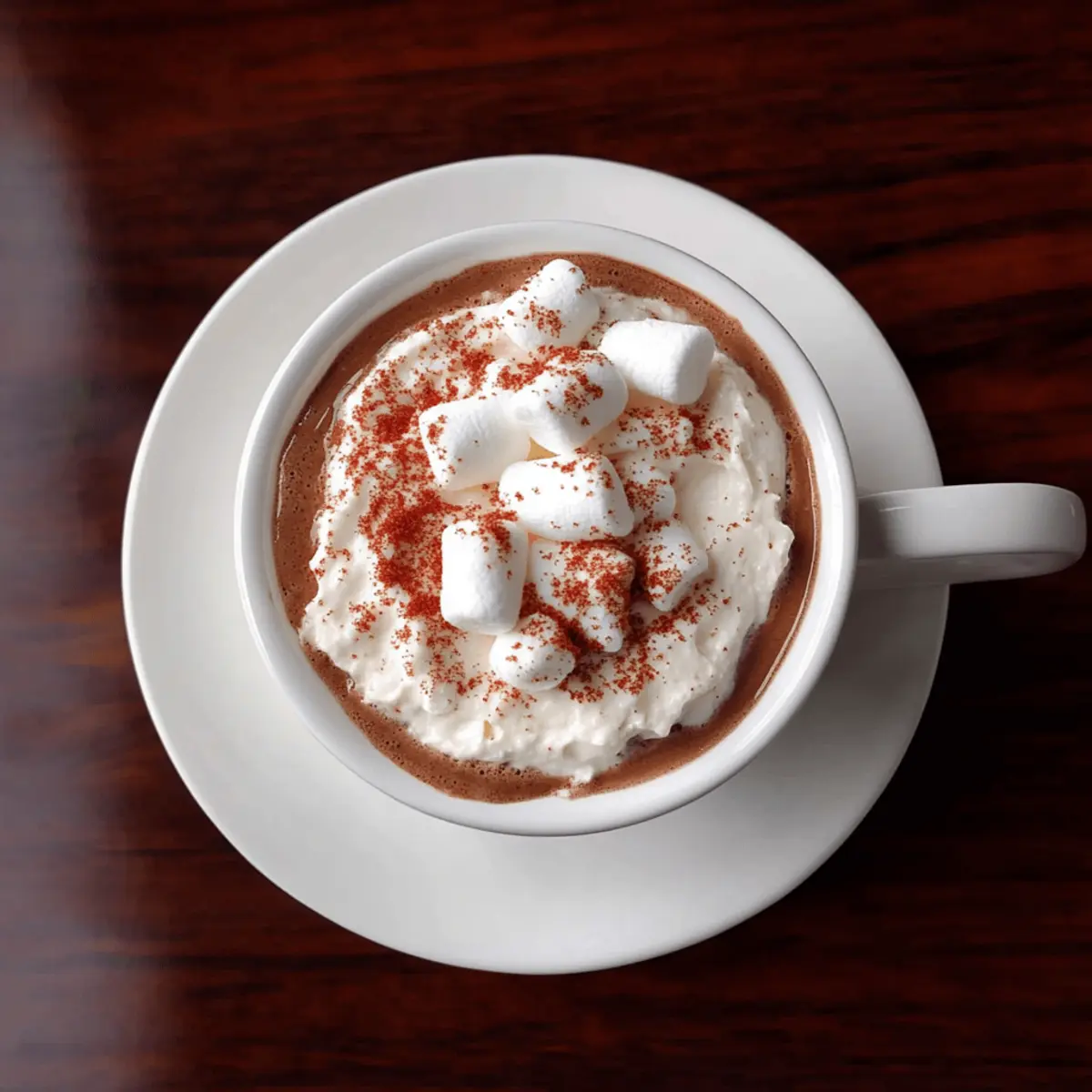 Jump to Recipe Print RecipeAs I stood in my kitchen, the aroma of chocolate and marshmallows swirling around me, I realized I had stumbled upon the ultimate comfort food: Hot Cocoa Dip. This delightful treat combines the creamy goodness of cream cheese with rich cocoa and sweet marshmallow fluff, creating a dip that feels like a warm hug in every bite. Not only is it incredibly easy to whip up in just minutes, but it’s also versatile enough for year-round enjoyment! Whether you’re sharing it with friends during game night or indulging alone on a cozy evening, this dip is sure to satisfy any chocolate craving. Plus, you can explore exciting variations like Mexican hot chocolate or mint chocolate dip to keep things interesting. Ready to dive into this silky, dreamy creation? Why You’ll Crave This Hot Cocoa Dip? Irresistible flavor: The combination of rich chocolate and sweet marshmallow fluff creates a symphony of taste that will make your taste buds dance. Quick to prepare: With just a few ingredients, you can whip up this dip in minutes—perfect for last-minute gatherings! Versatile variations: Enjoy classic flavors or mix things up with ideas like Mexican hot chocolate dip or a refreshing mint version. Crowd-pleasing appeal: It’s a showstopper at parties and a comforting indulgence for cozy nights in. Perfect pairings: Serve it with graham crackers, vanilla wafers, or fruit, making it easy for everyone to dive in and enjoy. This Hot Cocoa Dip is not just a snack; it’s an experience that brings warmth and happiness to any occasion! Hot Cocoa Dip Ingredients • Create the magic with these ingredients! For the Dip Cream Cheese – Provides structure and creaminess; ensure it’s softened to room temperature for easy mixing. Marshmallow Fluff – Adds sweetness and a light, airy texture; can substitute with marshmallow crème if necessary. Heavy Whipping Cream – Whipped to give a fluffy texture; Cool Whip can be used for convenience, though it contains preservatives. Hot Cocoa Mix – The main flavoring agent providing a chocolate base; unsweetened cocoa powder (½ cup) can substitute for less sweetness. Vanilla Extract – Enhances overall flavor; no substitutions recommended for optimal taste. For Garnishing Mini Marshmallows – Adds texture and a festive touch; optional, can be omitted if desired. Candy Cane Sprinkles – Provides festive decoration and a hint of mint flavor; can be replaced with other sprinkles or omitted. This blend of ingredients makes the ultimate Hot Cocoa Dip, perfect for indulging in every season! Step‑by‑Step Instructions for Hot Cocoa Dip Step 1: Prep Ingredients Begin by gathering all your ingredients—cream cheese, marshmallow fluff, heavy whipping cream, hot cocoa mix, and vanilla extract—so everything is at hand. Set the cream cheese out to soften for about 30 minutes if it’s in the fridge. This will ensure a smooth mix, making the Hot Cocoa Dip creamy and luscious. Step 2: Mix Base In a large mixing bowl, beat the softened cream cheese with an electric mixer on medium speed until it’s perfectly smooth, which should take about 1-2 minutes. Make sure there are no lumps left; you want a velvety base for your Hot Cocoa Dip that will serve as the foundation for all that chocolate goodness. Step 3: Add Fluff & Cream Next, scoop in the marshmallow fluff and pour in the heavy whipping cream. Blend these ingredients together at low speed until fully incorporated, which will take about 2-3 minutes. The mixture should appear fluffy and light, with a glossy finish that signals you’re on your way to creating the ultimate Hot Cocoa Dip. Step 4: Incorporate Dry Ingredients Gradually add the hot cocoa mix and vanilla extract into the creamy mixture. Mix on low speed until everything is combined and smooth—this should take another 1-2 minutes. As you mix, watch the texture transform into a rich, chocolatey blend that radiates comfort and indulgence, perfect for dipping. Step 5: Add Optional Spices If you want to elevate your Hot Cocoa Dip, consider adding a pinch of cinnamon or cayenne for a unique twist. Mix for an additional 30 seconds to incorporate these spices into the dip. This step is optional but can provide a delightful flavor kick, transforming your dip into something extraordinary. Step 6: Chill Cover the bowl with plastic wrap and refrigerate the Hot Cocoa Dip for at least 30 minutes. This chilling period allows the flavors to meld beautifully and enhances the overall creaminess. When you take it out, it should feel firmer and even more inviting. Step 7: Serve & Garnish Finally, scoop the chilled Hot Cocoa Dip into a serving bowl and give it a lovely presentation. Top with mini marshmallows and sprinkle candy cane decorations on top if you desire a festive look. Pair it with graham crackers, vanilla wafers, or fresh fruit to create an enticing snack spread that will have everyone coming back for seconds. How to Store and Freeze Hot Cocoa Dip Refrigerator: Store leftover Hot Cocoa Dip in an airtight container in the fridge for up to 3-4 days. Make sure to seal it tightly to preserve its creamy texture. Freezer: If you want to keep it for longer, you can freeze the dip for up to 2 months. Transfer it to a freezer-safe container and label it with the date. Thawing: To enjoy your frozen Hot Cocoa Dip, thaw it overnight in the refrigerator. Stir well before serving to regain its creamy consistency. Reheating: Avoid reheating the dip, as it’s best enjoyed chilled. Instead, simply stir and serve directly from the fridge post-thawing for an indulgent treat. What to Serve with Irresistible Hot Cocoa Dip? Imagine cozying up with friends and family, a delightful treat to savor while laughter fills the air. Graham Crackers: Their crisp texture provides a perfect contrast to the creamy dip, making each bite a delicious adventure. Fruits: Fresh strawberries, bananas, or apple slices add a refreshing contrast, enhancing the dip’s rich sweetnes