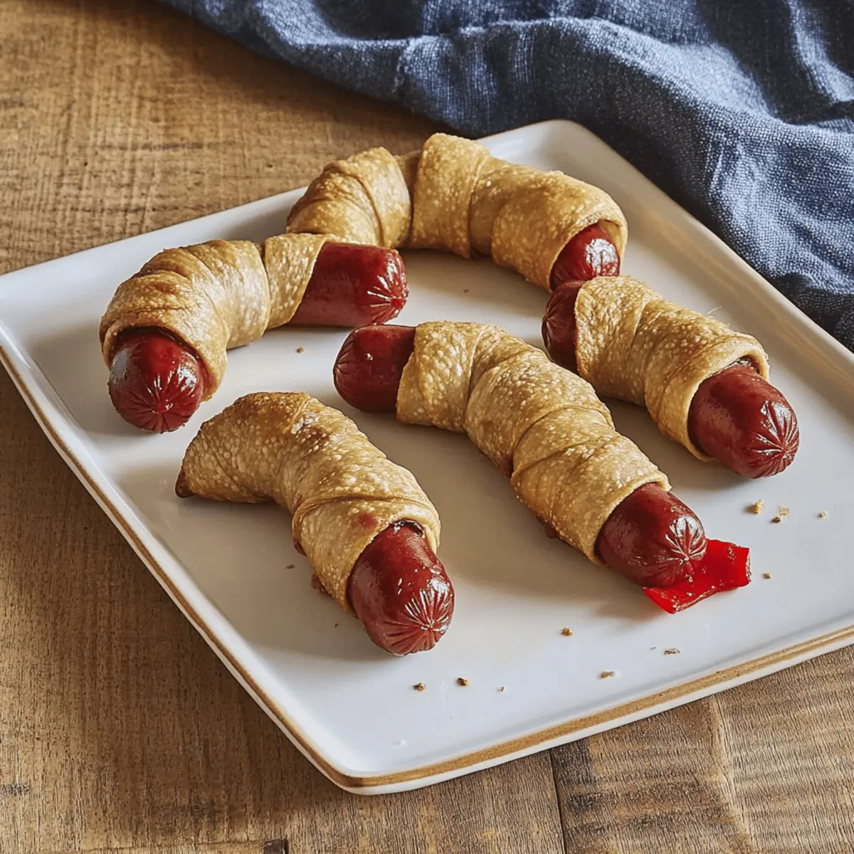 Jump to Recipe Print RecipeAs the leaves turn and the air gets that crisp bite of autumn, I can’t help but get excited for Halloween. This year, I’m crafting a playful twist on an all-time favorite: Easy Hot Dog Rattlesnake Bites. These quick-prep snacks are not just a feast for the eyes but also a guaranteed hit at any gathering, delightfully satisfying both kids and adults alike. With a crispy exterior and juicy hot dog center, these little “snakes” add a dash of fun and creativity to your Halloween festivities. Plus, they’re the kind of treat you can whip up in no time, leaving you more moments to enjoy with friends and family. Ready to create some delightful, spooky magic in your kitchen? Let’s dive into this fang-tastic recipe! Why Are Hot Dog Rattlesnake Bites So Fun? Quick and Easy: Prep time is minimal, making these bites perfect for last-minute gatherings! Kid-Approved: Their whimsical snake shape guarantees smiles, enticing even the pickiest eaters. Versatile Delight: Enjoy them for Halloween or any festive occasion—perfect with dipping sauces like Cheesy Breadsticks! Flavor Explosion: Crispy pastry with juicy hot dog filling creates a delightful contrast that every bite will surprise. Make Ahead: Prep them in advance and just bake when the party starts for maximum fun and minimal stress. Elevate your snacking game with these charming bites, and you might find yourself making them year-round! Hot Dog Rattlesnake Bites Ingredients For the Dough • Cooking Spray – Helps prevent sticking; try olive oil spray for a healthier option! • Crescent Roll Sheets (8-ounce container) – Provides a deliciously doughy exterior; substitute puff pastry for a flakier bite. For the Filling • Hot Dogs – The main attraction, cut into 1½-inch pieces for the perfect “snake” look; any preferred brand will work just fine. For Decoration • Roasted Red Bell Pepper – A colorful touch for the snake’s tongue; fresh peppers can be grilled or roasted at home. • Black Peppercorns – Optional but adds a fun element as eyes for visual appeal. For Dipping • Grainy Dijon Mustard – Enhances flavor and serves as a tasty dip; swap with yellow mustard for a milder option. These delightful Hot Dog Rattlesnake Bites are sure to bring smiles and tasty satisfaction at your next gathering! Step‑by‑Step Instructions for Hot Dog Rattlesnake Bites Step 1: Preheat the Oven Begin by preheating your oven to 375°F (190°C), following the instructions on the crescent roll package. This ensures that your Hot Dog Rattlesnake Bites bake evenly and achieve that delightful golden-brown crust. While the oven heats up, gather your ingredients and equipment to ensure a smooth cooking experience. Step 2: Prepare the Crescent Roll Dough Unroll the crescent roll sheets onto a clean countertop. Use a sharp knife to cut the dough into long strips, about 1 inch wide, to facilitate wrapping. The strips should be long enough to wrap around each hot dog while leaving the end exposed for a fun “snake head” effect. Set these prepared strips aside, and let your creativity flow! Step 3: Wrap the Hot Dogs Take one piece of hot dog, cut into 1½-inch lengths, and wrap a dough strip around it, ensuring that you cover it snugly but leave part of the hot dog open for that charming snake appearance. Repeat this process with each hot dog piece, creating as many bites as your ingredients allow. Each Hot Dog Rattlesnake Bite will come together in just a few moments! Step 4: Add Some Snakes’ Features Once all your hot dogs are wrapped, take small pieces of roasted red bell pepper and attach them at the unwrapped end of each hot dog, mimicking the tongue of the snake. This vibrant touch adds both color and flair, making your Hot Dog Rattlesnake Bites visually appealing for your Halloween feast. Step 5: Arrange and Spray Line a baking sheet with parchment paper or lightly grease it with cooking spray to prevent sticking. Carefully place each wrapped hot dog on the baking sheet, ensuring they are not crowded. Give them a gentle spray of cooking spray to enhance browning during baking. You want them to be crispy and delightful! Step 6: Bake to Perfection Slide the baking sheet into the preheated oven and bake for 15-20 minutes, or until the dough turns a lovely golden brown and looks crisp. Keep an eye on them during the last few minutes to achieve the perfect color. Kitchen aromas will fill your space, signaling that your Hot Dog Rattlesnake Bites are nearly ready to enjoy! Step 7: Serve with Dipping Sauce Once golden and crispy, remove the Hot Dog Rattlesnake Bites from the oven and let them cool for a minute. Serve them warm with grainy Dijon mustard for dipping. The combination of the savory hot dog, flaky dough, and zesty mustard will be sure to impress both kids and adults at your gathering! Expert Tips for Hot Dog Rattlesnake Bites Tight Wrap: Ensure the dough is wrapped tightly around each hot dog; this prevents separation while baking and keeps it crispy. Uniform Strips: Use a sharp knife to cut your crescent roll dough into even strips. Consistency ensures even baking and a polished appearance. Cool Before Serving: Allow the bites to cool for a couple of minutes after baking. This helps avoid burns and lets flavors settle beautifully. Presentation Matters: To enhance the “snake” effect, arrange the bites on a platter with dipping sauces and maybe even some themed decorations. Experiment with Fillings: Feel free to swap out hot dogs for veggie sausages or cheese sticks for a fun alternative. Hot Dog Rattlesnake Bites can easily cater to all dietary preferences! What to Serve with Hot Dog Rattlesnake Bites? Elevate your Halloween gathering by complementing these playful treats with tasty pairings that enhance both flavor and fun! Crispy Veggie Platter: Fresh, crunchy vegetables like carrots and bell peppers add a colorful and nutritious contrast to the savory bites. Cheesy Nachos: Warm tortilla chips 