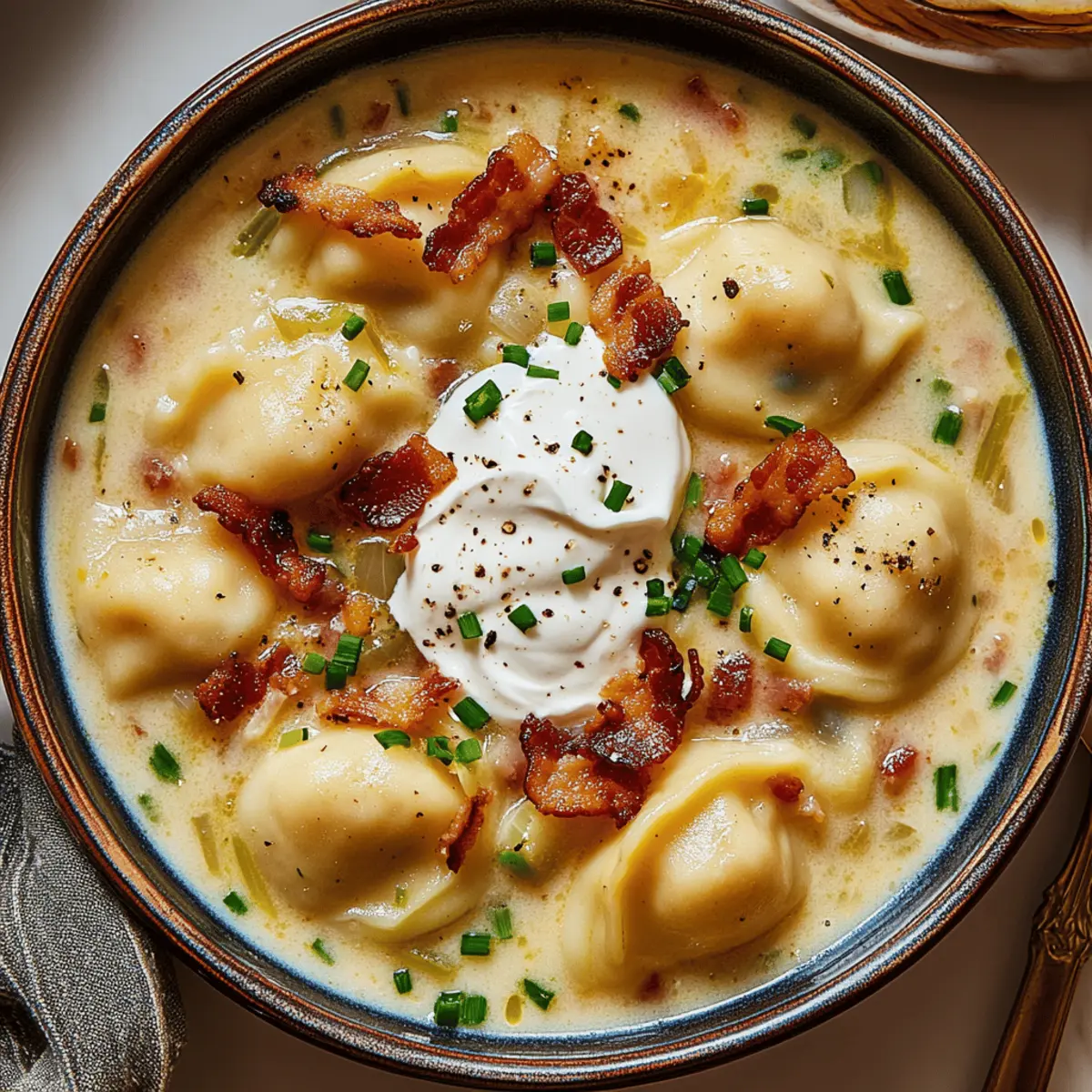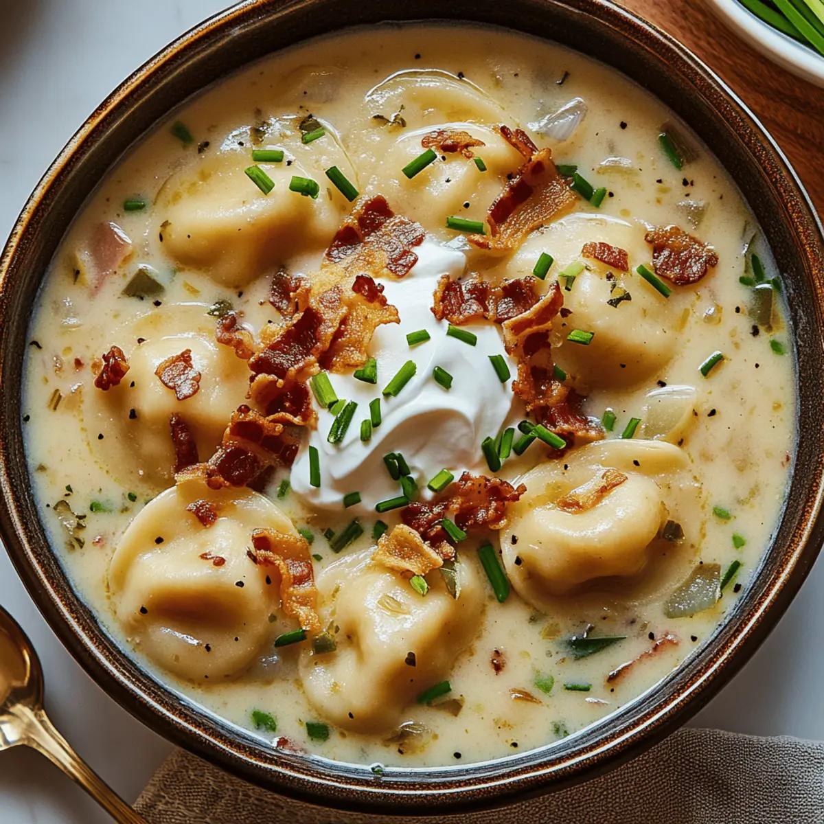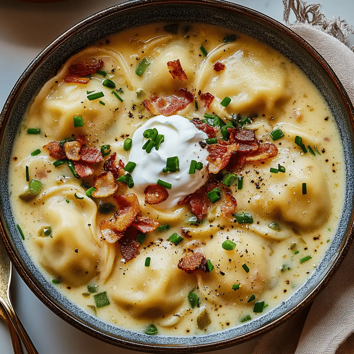 Jump to Recipe Print RecipeAs I stood in my kitchen, the aroma of sautéed leeks and garlic danced through the air, instantly warming my spirit. This Cozy Potato-Leek Soup with Mini Pierogi is my go-to comfort food, perfect for busy weeknights when I crave something nourishing yet satisfying. Just imagine a velvety bowl of creamy soup, enriched by golden, crispy pierogi that provide delightful texture and heartiness. Not only is it a quick prep dish that delivers on flavor, but it’s also easily adaptable for vegetarians or anyone looking to creatively use pantry staples. Let’s dive into this delicious recipe that feels like a cozy hug in a bowl—aren’t you curious about just how effortlessly comforting this meal can be? What makes this soup so comforting? Cozy flavors: The gentle sweetness of sautéed leeks combined with rich, creamy potatoes creates a warming sensation perfect for chilly nights. Texture contrast: Each spoonful is enhanced by crispy mini pierogi, adding a delightful crunch that elevates the overall experience. Quick prep: With minimal ingredients and straightforward steps, you can whip up this meal in no time, making it ideal for busy weeknights. Versatile options: Feel free to explore variations with different pierogi fillings or adapt it for a vegetarian diet, as this soup is naturally conducive to creativity. Crowd-pleaser: This Potato-Leek Soup with Mini Pierogi is sure to impress family and friends, making it an excellent choice for gatherings! Potato-Leek Soup with Mini Pierogi Ingredients For the Soup Butter – Adds richness and flavor; substitute with olive oil for a lighter option. Leeks – Provide sweetness and a mild onion flavor; use green onions in a pinch, though flavor will differ. Garlic – Enhances the overall aroma; fresh garlic is recommended; substitute with garlic powder if necessary. Yukon Gold Potatoes – Create a creamy texture as they blend well; substitute with Russet potatoes for a different flavor. Low-Sodium Broth – Forms the soup base; choose chicken or vegetable for versatility. Heavy Cream – Adds richness; replace with coconut cream for a vegan alternative. For the Mini Pierogi Mini Frozen Pierogi – Offers substance and texture; fresh or homemade pierogi can be used as well. Bacon – Adds savory depth to the dish; for vegetarians, use crispy shallots or smoked almonds. For the Seasoning and Garnish Salt & Pepper – Essential for seasoning; adjust to taste for perfect flavor balance. Garnish – Sour cream, chives, and extra bacon bits enhance presentation and flavor; personal touches make it special. Step‑by‑Step Instructions for Potato-Leek Soup with Mini Pierogi Step 1: Sauté the Aromatics In a large pot, melt 2 tablespoons of butter over medium heat. Add the sliced leeks and a pinch of salt, cooking for about 5 minutes until softened and fragrant. Stir in 2 minced garlic cloves and cook for an additional minute, allowing the garlic to infuse its aroma into the leeks, forming the flavorful base for your cozy Potato-Leek Soup. Step 2: Add Potatoes and Broth Next, introduce 4 peeled and diced Yukon Gold potatoes to the pot, followed by 4 cups of low-sodium broth (chicken or vegetable). Bring the mixture to a boil over high heat, then reduce to a simmer. Keep it uncovered and let it bubble away for 15-20 minutes until the potatoes are tender enough to pierce easily with a fork, transforming it into a rich soup base. Step 3: Blend the Soup Once the potatoes are tender, carefully use an immersion blender to puree the soup until it’s silky smooth. If you don’t have an immersion blender, transfer the mixture in batches to a regular blender, ensuring to let it cool slightly first. Once blended, return it to the pot and stir in 1 cup of heavy cream, then season to taste with salt and pepper for that final touch of flavor. Step 4: Cook the Mini Pierogi In a separate skillet, heat 2 tablespoons of bacon fat or additional butter over medium heat. Add 1 cup of mini frozen pierogi, arranging them in a single layer. Fry for 4-6 minutes, turning occasionally until they reach a golden-brown color and crispy texture, which perfectly complements the creamy Potato-Leek Soup. Step 5: Serve and Garnish Ladle the velvety Potato-Leek Soup into warm bowls, then top generously with the golden mini pierogi. For an extra touch of comfort, sprinkle crispy bacon bits and freshly chopped chives over the soup. Add a dollop of sour cream for richness, and savor this delightful dish that’s sure to bring warmth and satisfaction on any chilly night. Tips for the Best Potato-Leek Soup • Blend Carefully: Avoid over-blending potatoes to ensure a smooth texture; pulsate gently to prevent a gluey consistency in your Potato-Leek Soup. • Prep Ahead: Make the soup base ahead of time; it keeps in the fridge for up to 3 days without added pierogi or bacon, making last-minute meals simple. • Cool Before Blending: Cool the soup slightly before blending to avoid steam explosions, keeping your kitchen safe while creating creamy perfection. • Flavor Boost: For an extra depth of flavor, deglaze the pan with a splash of white wine after sautéing leeks before adding potatoes. • Season Generously: Remember to taste and adjust the seasoning; every broth can differ in saltiness, so keep your Potato-Leek Soup balanced and flavorful! Make Ahead Options These Cozy Potato-Leek Soup with Mini Pierogi are perfect for meal prep lovers! You can prepare the soup base up to 3 days in advance, simply blending the soup and storing it in an airtight container in the refrigerator. To maintain the creamy texture, wait to add the heavy cream until you’re ready to reheat. The mini pierogi can also be cooked in advance and stored in the fridge for up to 24 hours; just reheat them in a skillet before serving. When you’re set to enjoy your soup, gently heat it on the stove, stir in the cream, and serve with those delightful pierogi for a comforting meal with minimal ef