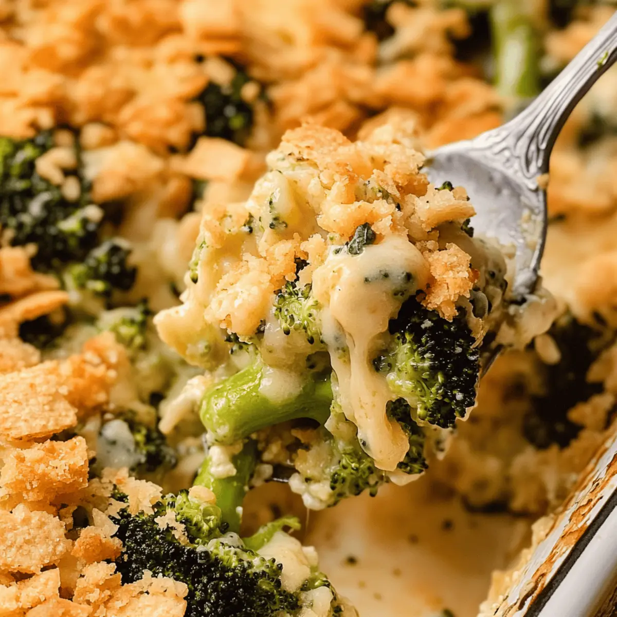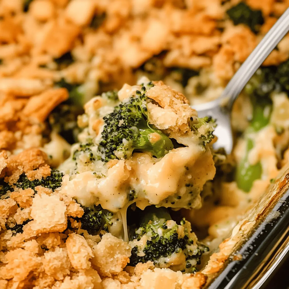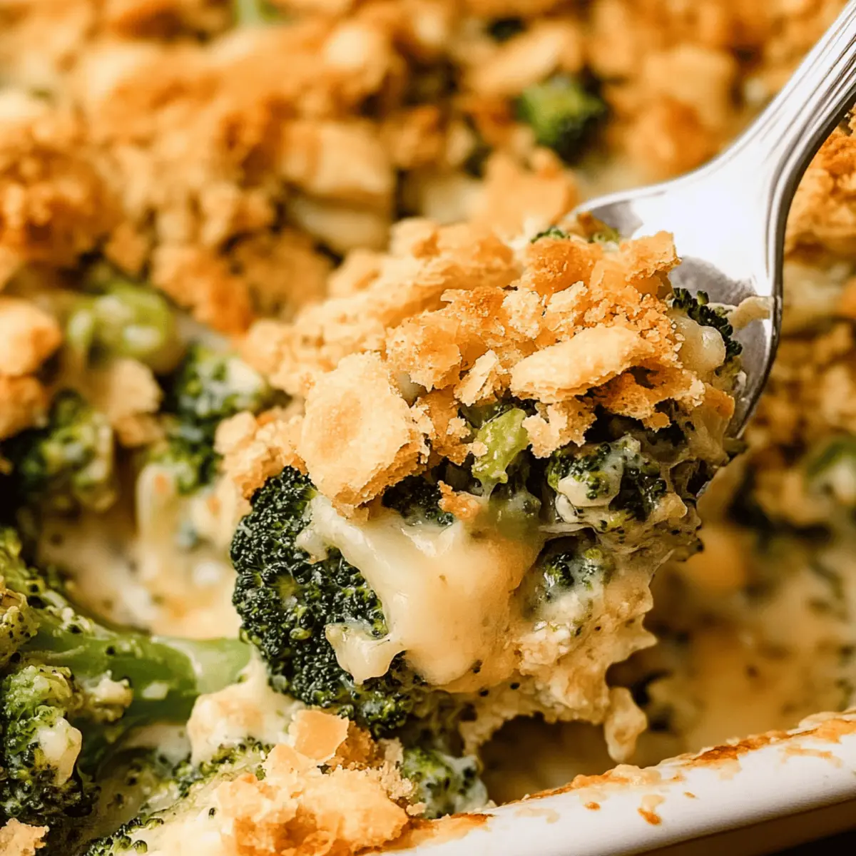 Jump to Recipe Print Recipe“Can we have broccoli again tonight?” That was the question I heard at the dinner table the other evening, and it sparked a delightful moment of inspiration. Introducing my Cheesy Ritz Cracker Broccoli Casserole—an easy and satisfying way to transform simple broccoli into a dish everyone will rave about. This vegetarian-friendly delight features roasted broccoli smothered in a creamy cheese sauce, crowned with a crunchy topping of buttery Ritz crackers. Not only is it a fantastic holiday side dish, but it also doubles as the ultimate comfort food, ensuring you can woo even the pickiest eaters at your table. Plus, it comes together in no time, perfect for busy weeknights or festive gatherings alike! Could this be the dish that makes broccoli a family favorite? Let’s find out! Why is Broccoli Casserole So Irresistible? Comforting, Creamy Goodness: This Broccoli Ritz Cheese Casserole envelops tender broccoli in a rich, velvety cheese sauce that warms the heart. Effortless Preparation: With just a few steps, you’ll create a stunning side dish that’s as easy as it is delicious, perfect for any home cook looking to impress. Crowd-Pleasing Flavor: The buttery Ritz cracker topping adds a delightful crunch that pairs perfectly with the creamy filling, making it a hit at family gatherings or holiday feasts. Versatile Delight: You can customize this dish by adding cooked chicken or substituting different cheeses, giving you the freedom to make it your own. Make-Ahead Convenience: Prepare it in advance and store it in the fridge or freezer, so you can effortlessly serve it any day of the week. For more crowd-pleasing recipes, check out these Grilled Chicken Broccoli bowls or Cheddar Potato Casserole options! Ritz Cracker Broccoli Cheese Casserole Ingredients • Let’s gather everything you need to create this comforting dish! For the Casserole Broccoli florets – The star of this dish, packed with nutrients and offers great texture. Can be blanched or steamed for a softer bite if preferred. Olive oil – Adds flavor and assists in roasting the broccoli. Feel free to swap in melted butter or canola oil if you wish. Kosher salt and pepper – Essential for enhancing the overall taste. Regular table salt works just as well if that’s what you have on hand. Unsalted butter – Serves as the base for the creamy cheese sauce, lending richness. Margarine or vegan alternatives can be used too! Flour – Helps thicken the cheese sauce to a creamy consistency. For gluten-free needs, opt for gluten-free flour. Warm milk – Integral for a smooth cheese sauce; 2% or whole milk is best, or use almond or soy milk for a dairy-free option. Garlic powder – Introduces depth of flavor; fresh garlic can be substituted for a bolder taste if you prefer that kick. Cayenne pepper – Adds a subtle hint of spice; simply omit it for a milder version if desired. Shredded cheddar cheese – The creaminess and flavor powerhouse of the sauce! Feel free to play around with other cheeses like Monterey Jack. For the Topping Ritz crackers – Their irresistible crunch and buttery taste elevate this casserole. You can swap with any buttery crackers or even breadcrumbs! Melted butter (for topping) – Ensures the cracker topping is golden and crispy. Omit this for a lower-fat version if you’d like. This Ritz Cracker Broccoli Cheese Casserole is sure to bring comfort and delight to any dinner table! Enjoy the delightful flavors and textures while sharing beautiful moments with loved ones. Step‑by‑Step Instructions for Ritz Cracker Broccoli Cheese Casserole Step 1: Preheat and Prepare Begin by preheating your oven to 425°F (220°C). While it warms up, grease a 9×13 inch baking dish with a bit of butter or cooking spray to ensure your Ritz Cracker Broccoli Cheese Casserole comes out easily. This is a crucial first step, as it sets the stage for perfect baking. Step 2: Roast the Broccoli In a large bowl, toss the broccoli florets with olive oil, salt, and pepper for a flavorful base. Spread them evenly on a baking sheet and roast in the preheated oven for 14-16 minutes, or until they are tender and lightly browned. Keep an eye on them; you’ll want them softened but not mushy for the best texture in your casserole. Step 3: Lower the Oven Temperature Once the broccoli is done, remove it from the oven and lower the temperature to 375°F (190°C). This adjustment is essential, as the Ritz Cracker Broccoli Cheese Casserole will bake at this temperature, allowing the cheese sauce to bubble and the topping to become golden brown. Step 4: Make the Cheese Sauce In a saucepan over medium heat, melt the unsalted butter until bubbly. Whisk in the flour, stirring continuously for about 1 minute to create a roux. Gradually add warm milk while whisking, cooking until the sauce thickens and starts to bubble. This creamy goodness will be the heart of your casserole, so ensure it’s smooth before moving on! Step 5: Add Flavor and Cheese Stir in garlic powder, cayenne pepper, and a touch of salt and pepper into your cheese sauce. Carefully fold in the shredded cheddar cheese until fully melted and creamy. The aroma will be heavenly! This cheesy mixture will generously coat your roasted broccoli, creating a delightful flavor in your Ritz Cracker Broccoli Cheese Casserole. Step 6: Prepare the Cracker Topping While your cheese sauce is becoming delicious, crush the Ritz crackers in a plastic bag until they resemble coarse crumbs. In a separate bowl, combine the crushed crackers with melted butter, mixing until all crumbs are coated evenly. This topping will add that irresistible crunch to your casserole, making each bite satisfying. Step 7: Assemble the Casserole Spread the roasted broccoli evenly in the prepared baking dish. Pour the luscious cheese sauce over the broccoli, ensuring it’s well coated. Then, sprinkle the buttery Ritz cracker mixture generously on top. This layering creates a visual treat