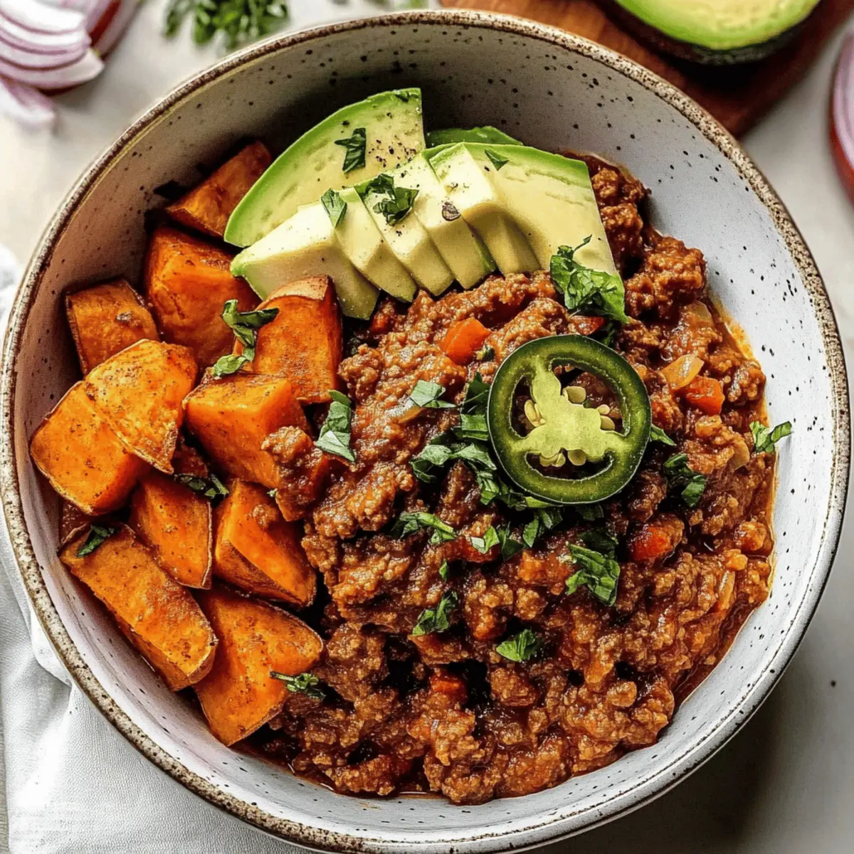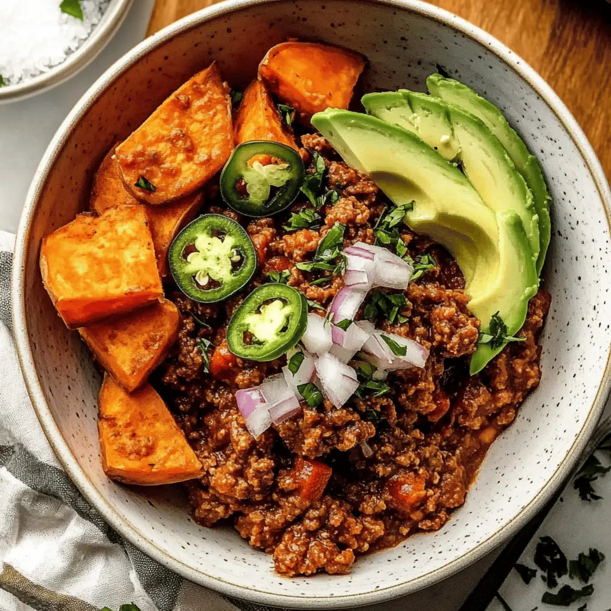 Jump to Recipe Print RecipeAs I stood in my kitchen, the comforting aroma of sautéed onions filled the air, instantly transporting me back to childhood dinners with my family. It’s amazing how a simple dish can hold so many memories, and that’s exactly what these Hearty Sloppy Joe Bowls bring to the table! This wholesome recipe takes the classic comfort food we all adore and transforms it into a nutritious dinner option that’s both protein-rich and gluten-free. In less than an hour, you can whip up a dish filled with textured layers of roasted sweet potatoes and a savory sloppy joe mixture, making it an ideal meal prep option for busy weeks. So why not ditch the fast food tonight? Your taste buds and your body will be thanking you. Ready to dive into this reimagined classic and explore the delicious toppings you can add? Why are Sloppy Joe Bowls so delightful? Comforting, nostalgic flavors: These savory sloppy joe bowls capture the beloved flavors of childhood while providing a nourishing twist. Protein-Packed: Each serving is loaded with protein, fueling your body and keeping you satisfied. Quick Prep: Ready in under an hour, these bowls are perfect for busy weeknights or meal prep sessions. Versatile Toppings: Customize with your favorite toppings like pickled onions or fresh avocado to make every bowl unique. Healthy Base: Roasted sweet potatoes add sweetness and nutrition, making it a wholesome dinner choice. Meal Prep Friendly: The sturdy ingredients hold up well for leftovers, so you can enjoy this comforting dish multiple days a week! For a great side, consider pairing them with Chicken Broccoli Bowls for a colorful and nutritious plate. Sloppy Joe Bowls Ingredients For the Sweet Potatoes Sweet Potatoes – Provides natural sweetness and a hearty base; can be swapped for mashed sweet potatoes or roasted baby potatoes. Avocado Oil – Ideal for roasting sweet potatoes and sautéing vegetables; olive oil is a great substitution. Garlic Powder – Adds aromatic flavor; feel free to use fresh garlic for an extra punch. For the Sloppy Joe Mix Yellow Onion – Adds depth to the flavor; red or white onions can be used for a different twist. Bell Pepper – Enhances texture and sweetness; any color bell pepper works beautifully. Lean Ground Beef – Serves as the main protein; ground turkey makes a lighter alternative. Tomato Paste – Introduces richness and depth to the savory flavor profile of the Sloppy Joe bowls. Mustard (Yellow/Dijon) – Brings a tangy note; consider apple cider vinegar as another tangy option. Coconut Aminos – A gluten-free alternative to soy sauce; low-sodium soy sauce can suit those who tolerate gluten. Paprika, Salt, & Pepper – Essential seasonings that elevate the overall flavor experience. Whether you enjoy a hearty dinner or are looking for meal prep-friendly options, these Sloppy Joe Bowls are sure to become a family favorite! Step‑by‑Step Instructions for Sloppy Joe Bowls Step 1: Preheat the Oven Begin by preheating your oven to 400°F (200°C). While the oven heats, wash and peel your sweet potatoes, then cube them into uniform pieces, about 1-inch in size. This ensures even roasting and enhances the flavor in your Sloppy Joe Bowls. Step 2: Roast Sweet Potatoes In a bowl, toss the cubed sweet potatoes with avocado oil, garlic powder, salt, and pepper until evenly coated. Spread the sweet potatoes on a baking sheet in a single layer. Roast in the oven for 18 minutes, then stir to ensure even cooking. Return to the oven and roast for an additional 5 to 8 minutes, or until they are golden brown and tender. Step 3: Sauté the Vegetables While the sweet potatoes roast, heat a drizzle of avocado oil in a large skillet over medium heat. Add the diced yellow onion and bell pepper, sautéing for about 5 minutes until they soften and become fragrant. Keep stirring occasionally to prevent sticking, as these vegetables will enrich the flavor of your Sloppy Joe mix. Step 4: Brown the Ground Beef Next, add the lean ground beef to the skillet with the sautéed onions and peppers. Cook, breaking it apart with a spatula, until the meat is browned and no longer pink, about 7-8 minutes. Make sure to drain any excess fat to keep your Sloppy Joe Bowls lighter and healthier. Step 5: Combine the Ingredients Once the beef is browned, stir in the tomato paste, mustard, coconut aminos, and a splash of water. Season with paprika, salt, and pepper to taste. Allow the mixture to simmer over low heat for about 10 minutes, stirring occasionally, until everything is well combined and heated through, creating that signature sloppy Joe flavor. Step 6: Assemble the Bowls To serve, scoop a generous portion of the roasted sweet potatoes into bowls and top with the savory Sloppy Joe mixture. You can layer the ingredients to your preference. Feel free to get creative with your toppings, such as pickled onions or fresh avocado, for a personalized touch that will elevate your Sloppy Joe Bowls experience. What to Serve with Hearty Sloppy Joe Bowls Embrace a nourishing feast that perfectly complements the bold, savory flavors of your Sloppy Joe Bowls! Sautéed Broccolini: Offers a vibrant crunch and a slight bitterness that beautifully balances the richness of the bowls. Roasted Green Beans: Their tender snaps and savory notes provide a fresh contrast, making your meal colorful and delicious. Creamy Coleslaw: Adds a refreshing, tangy crunch; the creaminess harmonizes with the hearty textures of the bowls, enhancing every bite. Garlic Breadsticks: With a buttery, toasted exterior, they fulfill that comforting craving, perfect for scooping up any leftover sloppy joe sauce. Quinoa Salad: Light and nutty, this salad adds a whole grain boost while offering a delightful medley of textures and flavors for a wholesome touch. Apple Slices: Fresh, sweet apple slices provide a crisp and juicy contrast, adding a playful bite that brightens the entire meal experience. Coconut Water: This refresh