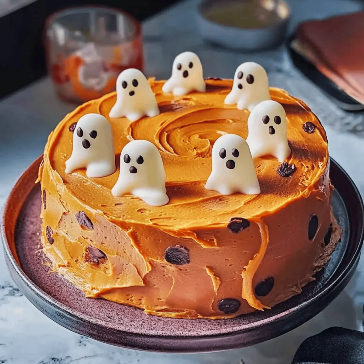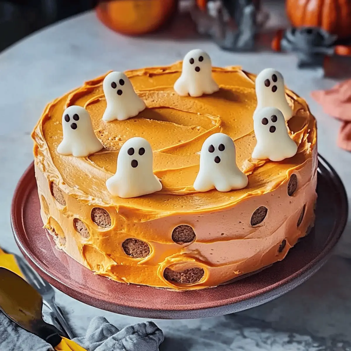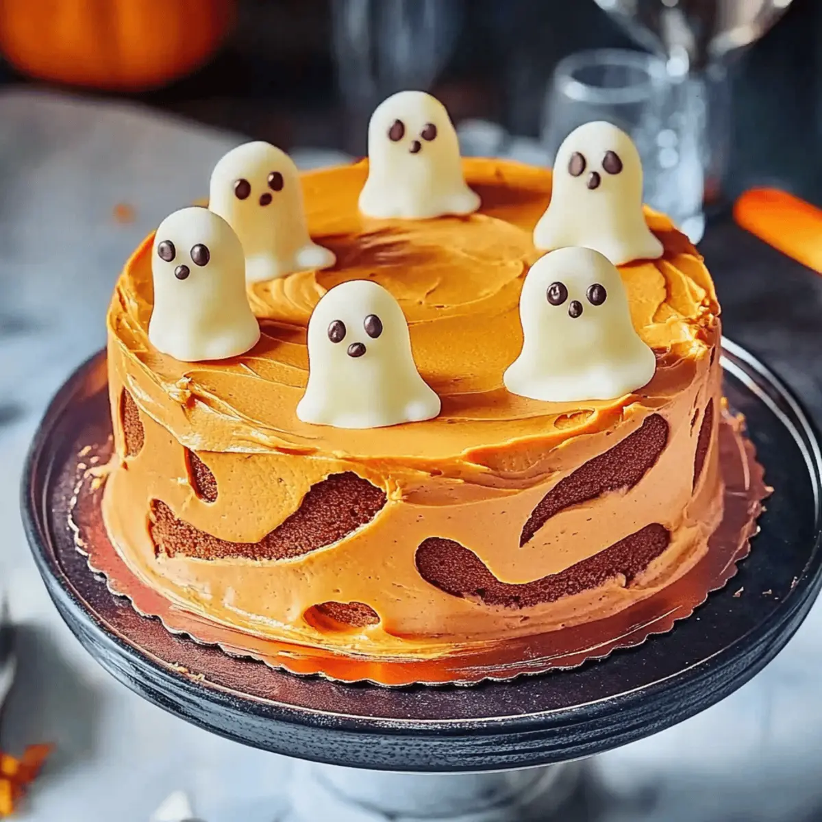Jump to Recipe Print RecipeAs I pulled my sweater tighter against the autumn chill, the warm, spiced aroma of my baking filled the kitchen, instantly transforming it into a cozy haven. This Spiced Pumpkin Halloween Cake is a delightful nod to the season, swirling flavors of cinnamon, nutmeg, and pumpkin into a moist, fluffy treat that’s sure to enchant your guests. Not only is it visually stunning, adorned with playful white chocolate ghosts, but it also comes together quickly, making it a perfect addition to your Halloween festivities. Whether you’re hosting a spooky gathering or simply want to bring a touch of festive cheer to your table, this cake promises to be the centerpiece and a delicious conversation starter. Ready to add a sprinkle of magic to your Halloween dessert table? Why is this cake a Halloween must-have? Irresistible Flavors: The warm spices of cinnamon and nutmeg dance with the sweet pumpkin purée, creating a heavenly autumnal taste that everyone will adore. Festive Appeal: Dressed up with whimsical white chocolate ghosts, this cake isn’t just delicious; it’s a stunning centerpiece for your Halloween celebrations. Easy Preparation: With simple ingredients and straightforward instructions, even novice bakers can create this delightful treat in no time. Versatile Variations: Feel free to swap in sweet potato or add orange zest for an extra twist; the possibilities are endless! Check out Strawberry Shortcake Bars for another impressive dessert idea. Crowd Favorite: Whether at a gathering or just for family, this cake brings smiles and sparks joy—making it a perfect choice for any occasion. Spiced Pumpkin Halloween Cake Ingredients For the Cake Vegetable Oil – Provides moisture and richness; melted coconut oil is a healthier alternative. Self-Raising Flour – Gives structure and lightness; substitute with all-purpose flour and baking powder if needed. Bicarbonate of Soda – Leavening agent that helps the cake rise; ensure it’s fresh for best results. Ground Spices (Cinnamon, Ginger, Nutmeg, Cloves) – Create a warm, aromatic flavor profile; increase cinnamon for a stronger taste if desired. Caster Sugar – Sweetens the cake with a fine texture; granulated sugar can replace it if necessary. Light Brown Soft Sugar – Adds moisture and a rich flavor; brown sugar is an acceptable substitute. Eggs – Provide structure and moisture; use flax eggs for a vegan variation. Pumpkin Purée – Contributes moisture and flavor; homemade purée or butternut squash can be used instead. Milk – Adds a soft texture; almond milk can be a great dairy-free alternative. Vanilla Extract – Enhances the cake’s flavor; opt for high-quality extract for the best results. For the Frosting Soft Cheese and Unsalted Butter – Create a creamy frosting base; cream cheese offers a richer flavor. Icing Sugar – Sweetens and stabilizes the frosting; powdered sugar can be used for a similar effect. Gel Food Colouring (Orange and Pink) – Used to color frosting; natural colorants are a great option if preferred. For the Decoration White Chocolate – Used for making whimsical ghosts; milk or dark chocolate make easy alternatives. Black Edible Icing Pen – Adds a spooky decoration touch; optional, but fun! Sprinkles (optional) – Enhance the visual appeal; use Halloween-themed sprinkles for added festivity. The Spiced Pumpkin Halloween Cake is not just a treat for the taste buds but also for the eyes—a perfect fusion of flavor and fun this Halloween season! Step‑by‑Step Instructions for Spiced Pumpkin Halloween Cake Step 1: Preheat the Oven and Prepare Tins Begin by preheating your oven to 180°C (160°C fan) or gas mark 4. While the oven warms up, prepare two 20cm round cake tins by lightly greasing them with vegetable oil and lining the bottoms with parchment paper. This ensures easy release and a perfect shape for your spiced pumpkin Halloween cake once baked. Step 2: Combine Dry Ingredients In a large mixing bowl, sift together the self-raising flour, bicarbonate of soda, and your chosen ground spices (cinnamon, ginger, nutmeg, cloves). This will help to evenly distribute the leavening agents and spices, contributing to the fluffy texture of your cake. Set this bowl aside while you work on the wet mixture. Step 3: Whisk the Wet Ingredients In a separate bowl, whisk together the caster sugar, light brown soft sugar, vegetable oil, eggs, pumpkin purée, milk, and vanilla extract until well combined. This mixture should look smooth and glossy, invitingly fragrant with pumpkin and vanilla. Once combined, it’s time to bring the two mixtures together for your spiced pumpkin Halloween cake. Step 4: Combine Wet and Dry Mixtures Gradually pour the wet mixture into the bowl of dry ingredients. Gently fold them together using a spatula or wooden spoon until just combined; be careful not to over-mix as this can lead to a dense cake. Once you have a smooth batter, divide it evenly between the two prepared cake tins, leveling the tops with a spatula. Step 5: Bake the Cake Place the cake tins in your preheated oven and bake for approximately 30 minutes. Check for doneness by inserting a skewer into the center; it should come out clean. Once baked, allow the cakes to cool in the tins for about 10 minutes before carefully transferring them to a wire rack to cool completely. Step 6: Make the White Chocolate Ghosts While the cakes are cooling, melt your white chocolate in a microwave-safe bowl, heating in 15-second intervals to avoid burning. Once melted, drizzle the chocolate onto a sheet of parchment paper, shaping it into ghost figures. Place them in the fridge until firm, which typically takes about 30 minutes, allowing them to maintain their spooky shape. Step 7: Prepare the Frosting In a medium bowl, beat together the soft cheese and unsalted butter until creamy and smooth. Gradually mix in the icing sugar and a splash of vanilla extract. If desired, divide the frosting to color it 