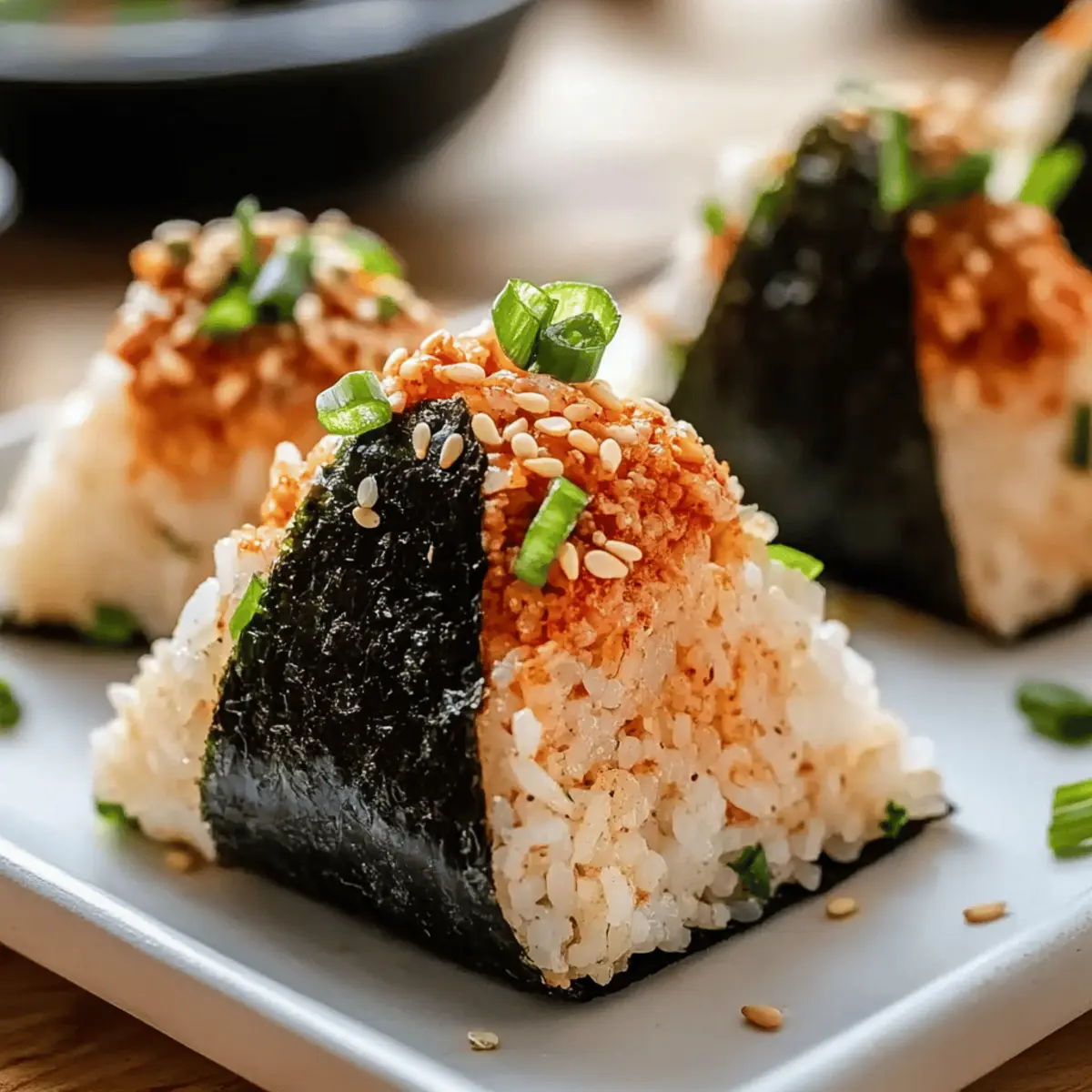 Jump to Recipe Print RecipeAs I stood in my kitchen, the smell of perfectly cooked sushi rice wafted through the air, whisking me away to a bustling street market in Tokyo. This Spicy Tuna Onigiri Recipe brings the enchanting tastes of Japanese street food right to your home, combining traditional artistry with a contemporary flair. These delightful rice balls are not only a feast for the eyes but also a quick and convenient option for busy weeknights or delightful picnic outings. With a creamy, spicy filling that pairs impeccably with tender, seasoned rice, you’ll find yourself craving these more often than takeout. Plus, they’re easily customizable—whether you prefer gluten-free or vegan options, this dish accommodates every palate. Ready to roll up your sleeves and indulge in some homemade goodness? Let’s dive into this delicious adventure together! Why Is Spicy Tuna Onigiri So Loved? Irresistible Taste: The fusion of creamy tuna, spicy sriracha, and fragrant sesame oil creates a flavor explosion in every bite! Customizable Options: Easily adapt this recipe for gluten-free or vegan diets, making it versatile for everyone at your table. Perfect for Meal Prep: This dish is not just a quick fix; you can prepare the rice and filling ahead of time for a delicious grab-and-go option. Satisfying Snack: Ideal for lunchboxes or picnics, these rice balls are a fun and satisfying alternative to fast food, perfect for those craving homemade delight. Quick to Make: With simple ingredients and an easy process, you can whip up this dish in under an hour, ensuring deliciousness is never out of reach. Spicy Tuna Onigiri Ingredients For the Rice • Sushi Rice – This sticky rice is essential for achieving the perfect texture; rinse until the water runs clear to avoid excess starch. • Rice Vinegar – Adds essential tang to the rice, creating that authentic onigiri flavor. • Sugar – Balances the acidity of the rice vinegar for a well-rounded taste. • Salt – Enhances the rice’s flavor, ensuring it’s seasoned just right. For the Filling • Canned Tuna – The star ingredient providing creamy texture; flake it well before mixing for maximum flavor distribution. • Mayonnaise – Creates creaminess in the filling; swap for vegan mayonnaise for a tasty plant-based alternative. • Sriracha – Adds a spicy kick that can be adjusted to your heat preference; a little goes a long way! • Sesame Oil – Introduces a nutty depth to the filling; can be omitted if you prefer a lighter taste. • Soy Sauce – Seasoning for the filling; use tamari instead for a gluten-free option. • Green Onion – Adds a fresh, crunchy texture and bright flavor contrast; totally optional, but recommended! For Wrapping • Nori Sheets – Provide an oceanic flavor and easy handling; tear into strips for wrapping each onigiri. Dive into your culinary journey with this Spicy Tuna Onigiri Recipe, where tradition meets modern flavor! Step‑by‑Step Instructions for Spicy Tuna Onigiri Recipe Step 1: Prepare the Rice Begin by rinsing 2 cups of sushi rice under cold water until the water runs clear, removing excess starch for the perfect texture. In a rice cooker or pot, combine the rinsed rice with 2 ½ cups of water and cook according to package directions, usually about 18-20 minutes. Once cooked, let the rice cool for about 10 minutes, ensuring it remains slightly warm and sticky, ideal for shaping the onigiri. Step 2: Season the Rice In a small bowl, whisk together 2 tablespoons of rice vinegar, 1 tablespoon of sugar, and 1 teaspoon of salt until fully dissolved. Gently fold this mixture into the cooled sushi rice using a wooden spatula or rice paddle, being careful not to mash the grains. The seasoned rice should have a subtle shine and be flavorful, ready to form the base for your Spicy Tuna Onigiri. Step 3: Make the Filling In a mixing bowl, flake one 5-ounce can of tuna using a fork, breaking it down into fine pieces for an even texture. Add 2 tablespoons of mayonnaise, 1 tablespoon of sriracha (or more to taste), 1 teaspoon of sesame oil, and 1 teaspoon of soy sauce (or tamari for gluten-free). Mix well until all ingredients are combined, and fold in 1 finely chopped green onion if using. The filling should be creamy with a spicy kick. Step 4: Shape Onigiri Wet your hands with water to prevent the rice from sticking. Take a handful of the seasoned rice (about ½ cup), and flatten it slightly in your palm to create a small well in the center. Spoon a generous portion of the tuna filling into the well, then carefully mold the rice around the filling to encase it. Use your hands to press the rice into a firm triangle shape, ensuring it holds together well. Step 5: Wrap and Serve Cut nori sheets into strips, then wrap each formed onigiri with a strip of nori, which adds flavor and makes them easy to handle. For the best texture, serve your Spicy Tuna Onigiri immediately while still slightly warm. If not serving right away, keep them covered with a damp cloth to maintain moisture without making the rice mushy. Enjoy your delightful and convenient homemade meal! What to Serve with Spicy Tuna Onigiri Enjoy these delicate rice balls alongside these delightful pairings to create a well-rounded meal experience. Miso Soup: A warm, savory broth that complements the onigiri’s creamy filling, offering a comforting contrast. Each spoonful enhances the flavors while providing warmth. Pickled Vegetables: Crunchy and tangy, they cleanse the palate and contrast the richness of the tuna, creating a beautiful balance of textures. Cucumber Salad: Refreshing and crisp, this salad adds a lightness to your meal. Toss it with a sprinkle of sesame seeds for that extra touch of flavor! Edamame Beans: Lightly salted, these provide protein and a satisfying pop in every bite, rounding out your meal in a nutritious way. Seaweed Salad: Earthy and zesty, this salad brings a delightful umami flavor that harmonizes perfectly with th