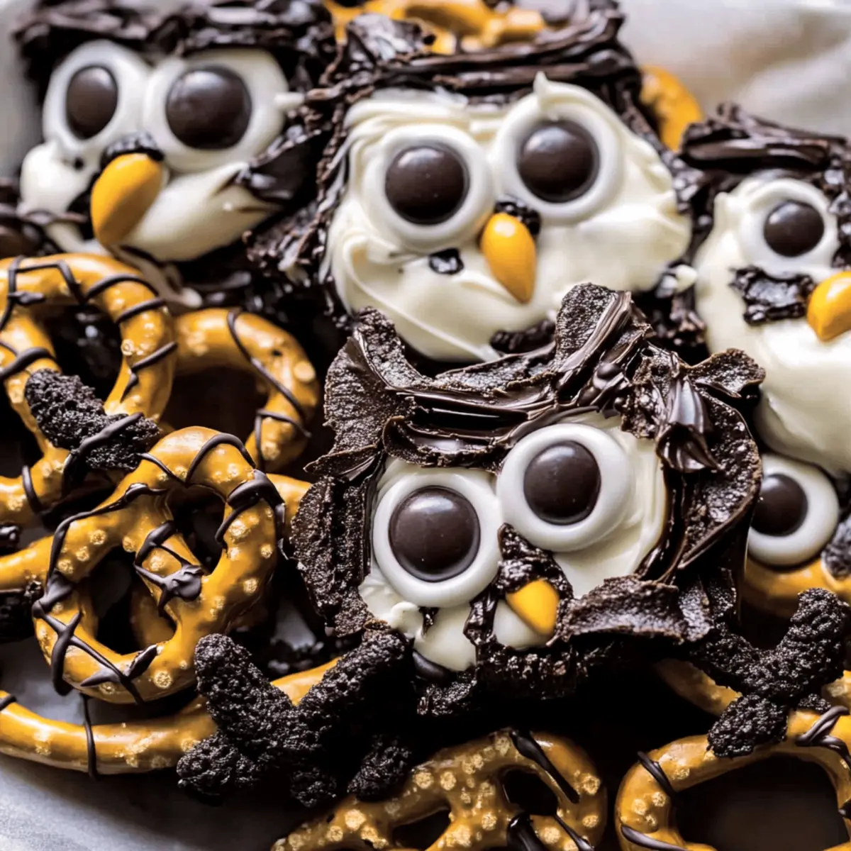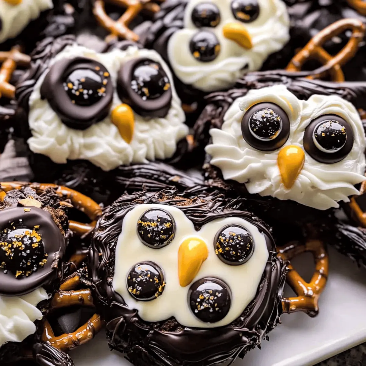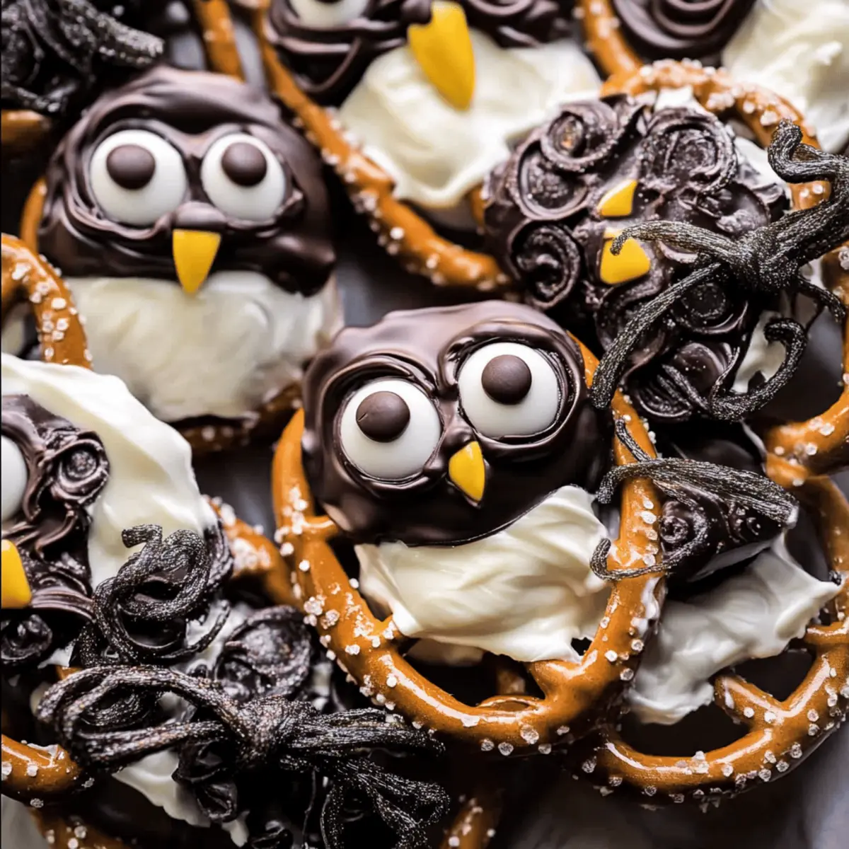 Jump to Recipe Print RecipeAs I sifted through Halloween decorations, a delightful idea flickered in my mind—my Spooky Halloween Pretzels. These charming treats bring together the irresistible mix of sweet and salty, making them the ideal festive addition to any gathering. What I love most is how effortlessly easy they are to create; with just a few simple steps, anyone can unleash their inner artist while crafting these no-bake wonders! Perfect for both the young and the young-at-heart, these chocolate-covered delights aren’t just visually captivating—they’re a guaranteed crowd-pleaser. So, are you ready to transform ordinary pretzels into delightful little creatures that will haunt your Halloween party? Let’s dive into the fun! Why Are These Pretzels So Fun? Irresistible Flavor: The combination of sweet chocolate and salty pretzels creates a mouthwatering taste that will keep your guests coming back for more. Endless Creativity: With variations like owls and mummies, you can customize your treats to match your Halloween theme, making each batch uniquely yours. No-Bake Easy: These treats are simple enough for even novice bakers to whip up, allowing you to impress your friends without spending hours in the kitchen. Perfect for Any Gathering: Whether it’s a Halloween party or a cozy family night, these Spooky Halloween Pretzels are a treat that everyone will adore! Quick Set Time: With only a short freeze time, you can have these delightful snacks ready in a flash—perfect for those last-minute gatherings. With all these fun benefits, it’s clear why everyone will love your Spooky Halloween Pretzels! For more festive ideas, check out my other no-bake treats that are perfect for any occasion. Spooky Halloween Pretzel Ingredients For the Chocolate Coating • Milk or Semi-Sweet Chocolate (16 ounces) – This is the main coating; you can use dark chocolate for a richer taste. • White Chocolate (8 ounces) – Perfect for creating fun designs; almond bark works well as a stable alternative. For the Pretzel Base • Large Pretzel Twists (16) – These add a fun base; feel free to swap with pretzel rods for a different look. • Pretzel Rods (8) – Optional, but they provide a great shape for whimsical designs. For Decoration • Oreos – These will become the eyes of your spooky creations; any cream-filled cookie can be a good substitute. • Candy Eyes – Enhance the spooky factor with these fun decorations; chocolate chips can work if you can’t find candy eyes. • Melted Chocolate or Candy Melts – Use these for decorating; splash some color with food-safe dyes for vibrant designs! • Black Licorice – Adds flair for eyebrows and other details; chocolate string or an edible marker works as an alternative. • Fall M&M’s – Perfect for little nose details; swap with any favorite candy piece for customization. With these simple ingredients, your Spooky Halloween Pretzels will quickly become a fun centerpiece for your Halloween festivities! Step‑by‑Step Instructions for Spooky Halloween Pretzels. Step 1: Melt the Chocolate Begin by preparing your chocolate coating for the Spooky Halloween Pretzels. Place 16 ounces of milk or semi-sweet chocolate in a microwave-safe bowl and heat in 30-second intervals, stirring in between until smooth and melted, around 1-2 minutes total. Alternatively, use a double boiler for a gentler melt. The chocolate should be glossy and liquid for optimal dipping. Step 2: Dip the Pretzels Take your large pretzel twists and dip each one into the melted chocolate, ensuring it’s fully coated. Allow any excess chocolate to drip back into the bowl before placing the dipped pretzels onto a parchment-lined baking sheet. Repeat until all pretzels are coated, creating a delicious base for your spooky creations. Step 3: Decorate the Owls To create whimsical owl designs, take a few Oreos, split them in half to use as eyes, and attach them to the chocolate-covered pretzels with a drizzle of melted chocolate. Use additional melted chocolate to create eyebrows, adding small pieces of black licorice for extra flair. Don’t forget to press on M&M’s for the perfect little noses. Step 4: Set in the Freezer Once your pretzels are decorated, transfer the baking sheet to the freezer and chill for about 10 minutes. This step allows the chocolate coating to set firmly, ensuring that your Spooky Halloween Pretzels hold their delightful designs. Keep an eye on them; they should look glossy and solid when ready to enjoy. Step 5: Create Variations Feel free to mix it up! For more spooky designs, melt 8 ounces of white chocolate and repeat the dipping process with pretzel rods or twists. Decorate these with colorful candy melts or edible markers. With different designs and colors, your Spooky Halloween Pretzels will be a feast for the eyes and perfect for the festive season. Step 6: Serve and Store After the pretzels have set and the chocolate is hard, they’re ready to be served! Present your Spooky Halloween Pretzels on a festive platter, or store them in an airtight container at room temperature for up to a week. Enjoy the crunchy, chewy, and delightfully spooky treats with family and friends at your Halloween gatherings! Expert Tips for Spooky Halloween Pretzels Creative Freedom: Embrace your artistic side! The messier the design, the spookier the pretzels will look, so have fun! Melting Chocolate: Ensure your chocolate is at the right melting temperature to prevent clumping; use a double boiler for best results. Chill Time: Allow the chocolate to set fully in the freezer for at least 10 minutes. This will help maintain the perfect texture of your Spooky Halloween Pretzels. Candy Alternatives: If candy eyes aren’t available, chocolate chips work just as well. Get creative with your decorations using what you have on hand! Experiment with Flavors: Feel free to swap milk chocolate for flavored chocolate options. This’ll add extra excitement to your sweet a