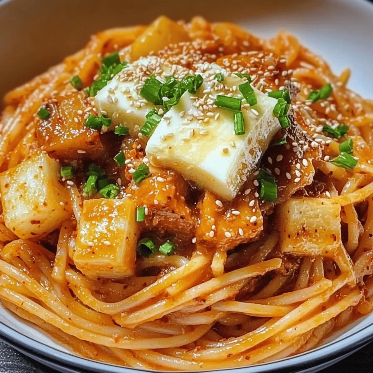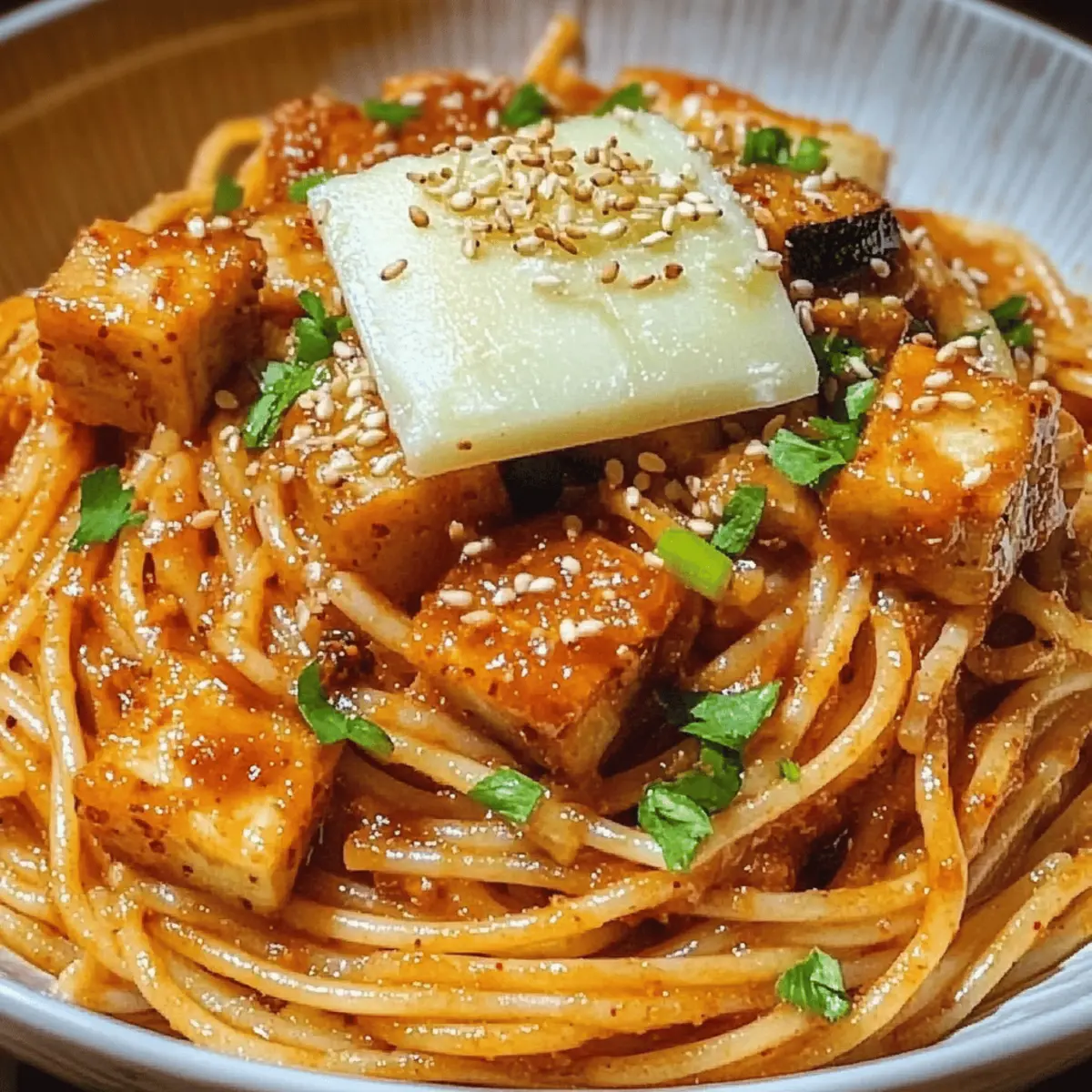 Jump to Recipe Print RecipeAs I twirled the perfect strands of pasta around my fork, a wave of comfort washed over me. With just a hint of spice and a velvety sauce, this Creamy Korean Ssamjang Pasta is not just another meal—it’s an experience that whisks you away to a bustling Asian street market without leaving your kitchen. Bursting with flavor from the unique umami kick of ssamjang, this dish also excels in convenience, making it the ideal choice for those busy weeknights when the last thing you want to do is compromise on taste. Plus, it’s a one-pot wonder packed with vibrant veggies, offering a nourishing twist to your usual pasta routine. Curious to discover how this delightful fusion transforms your dinner table? Let’s dive into the recipe! Why is Ssamjang Pasta a Must-Try? Unique Fusion: This recipe brings together comforting pasta with the bold, rich flavors of Korean ssamjang, creating a delightful flavor adventure for your taste buds. Quick and Easy: In just 30 minutes, you can whip up this creamy dish—perfect for those hectic weeknights! Versatile Veggies: Feel free to customize your veggies based on what’s in season or what you have on hand, making it your own every time. Nourishing and Satisfying: Packed with protein and fiber, this pasta will keep you full and content, transcending typical fast-food options. Crowd-Pleasing Appeal: Not only is it indulgent, but it also impresses friends and family alike, ensuring second helpings are a must! Need more quick meal ideas? Check out this Pea Bacon Pasta or Egg Macaroni Pasta for additional inspiration. Ssamjang Pasta Ingredients For the Pasta • Spaghetti (250g) – The main carbohydrate source for this dish; feel free to substitute with gluten-free pasta or any preferred type for a delightful twist. For the Sauce • Ssamjang (3 tablespoons) – This unique Korean dipping sauce provides the essential savory and spicy flavor; if unavailable, a mix of miso and chili paste works as a great alternative. • Heavy cream (1 cup) – Adds luxurious creaminess and richness to the sauce; opt for coconut cream if you’re aiming for a dairy-free delight. • Sesame oil (2 tablespoons) – Imparts a delightful nutty flavor to the sauce; avocado oil can be used for a lighter touch. For the Aromatics • Garlic (3 cloves, minced) – An aromatic base that deepens the sauce’s flavor; fresh garlic is best for maximum taste. • Onion (1 small, finely chopped) – Provides natural sweetness and enhances flavor; shallots can be swapped in for a softer taste. For the Vegetables • Seasonal vegetables (1 cup, e.g., bell peppers, zucchini, or spinach) – Adds color, nutrition, and texture; feel free to mix and match based on what you have or what’s in season. For Added Protein • Cooked protein (100g, e.g., chicken, tofu, or shrimp) – Complements the pasta and increases satiety; switch to beans for a vegetarian option. For Seasoning • Salt and pepper – Essential for enhancing the overall taste; adjust according to your preference. For Garnishing • Sesame seeds and fresh cilantro or green onions – These optional garnishes add an extra flavor boost and elevate the presentation of your dish. Step‑by‑Step Instructions for Creamy Korean Ssamjang (쌈장) Pasta Step 1: Cook Pasta Begin by bringing a large pot of salted water to a rolling boil. Once boiling, add 250g of spaghetti and cook according to package instructions until al dente, about 9-11 minutes. Before draining, reserve about a cup of the pasta water to help adjust the sauce later. Drain the spaghetti and set it aside. Step 2: Sauté Aromatics In a large skillet, heat 2 tablespoons of sesame oil over medium heat. Once the oil is shimmering, add 3 minced garlic cloves and 1 finely chopped onion. Sauté for about 2-3 minutes, stirring frequently, until the aromatic mixture turns fragrant and the onions become translucent, creating a wonderful base for your creamy Korean Ssamjang pasta. Step 3: Add Vegetables Next, add your choice of seasonal vegetables, like bell peppers or zucchini, to the skillet. Cook for about 4-5 minutes, stirring occasionally until the vegetables begin to soften and become vibrant. This step not only introduces additional flavor but also colors to your creamy sauce, enhancing the overall appeal of your Ssamjang pasta. Step 4: Incorporate Protein Once the vegetables are slightly softened, stir in 100g of your cooked protein, such as chicken or tofu. Cook for an additional 2-3 minutes until the protein is heated through. This helps meld the flavors together, ensuring your creamy Korean Ssamjang pasta is satisfying and complete. Step 5: Create Sauce Reduce the heat to low, then pour in 1 cup of heavy cream and add 3 tablespoons of ssamjang. Stir well to combine everything, and let the mixture simmer gently for 2-3 minutes. The sauce should turn smooth and creamy, blending the unique umami flavor of ssamjang with the richness of the cream, creating a luscious coating for your pasta. Step 6: Combine Add the drained spaghetti to the skillet, tossing it gently with the sauce until the pasta is fully coated. If the sauce seems too thick, gradually add some of the reserved pasta water—about a tablespoon at a time—until you achieve the desired creaminess. This blending step is crucial for the ultimate texture of your creamy Korean Ssamjang pasta. Step 7: Season Taste the dish and season with salt and pepper as needed. This ensures that all the flavors are perfectly balanced and highlights the richness of the creamy sauce. Adjust the seasoning to your preference, allowing the delicious notes of ssamjang to shine through in your comforting pasta dish. Step 8: Garnish Finally, serve your Creamy Korean Ssamjang Pasta warm, topped with a sprinkle of sesame seeds and freshly chopped cilantro or green onions for a burst of color and flavor. This last step adds an elegant touch and enhances the overall presentation, inviting everyone to dig in and sav