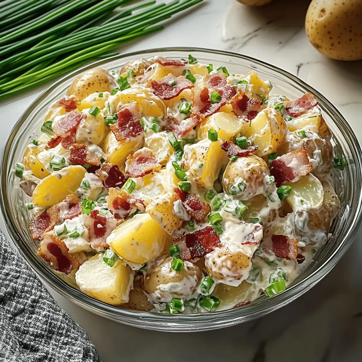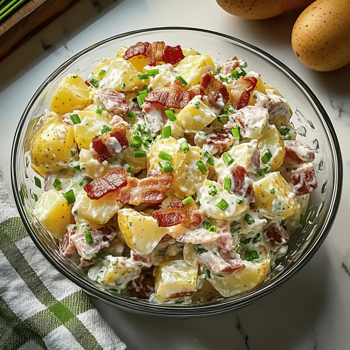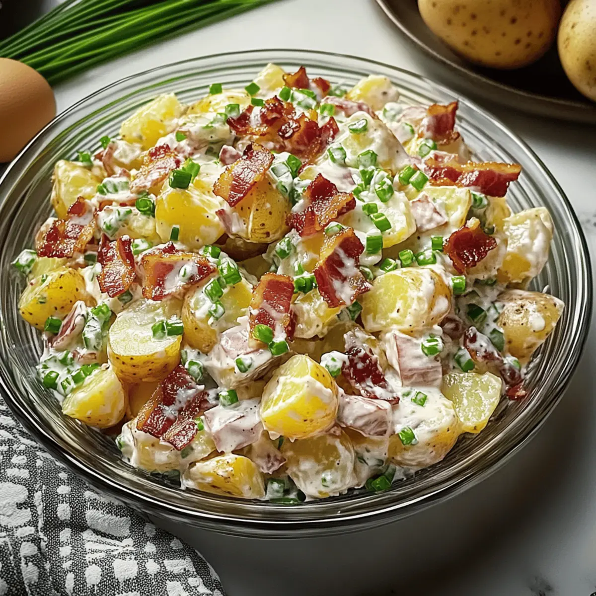 Jump to Recipe Print Recipe“Have you ever found yourself staring at a bottle of store-bought dressing, feeling uninspired and craving something more? That’s when I decided to elevate the classic side dish with my Steakhouse Potato Salad. This recipe is the heartwarming answer to any gathering, with its creamy dressing, savory bacon, and a hint of fresh chives bringing comfort to your table. Perfect for barbecues or potlucks, it’s a delightful crowd-pleaser that doesn’t skimp on flavor. With its easy-to-follow instructions and customizable options—like a mayo-free version or a vegan take—preparing this dish will not only impress your family but also create delicious memories around the dinner table. Ready to turn those potatoes into a show-stopping side?” Why is Steakhouse Potato Salad a Must-Try? Comforting Sensation: This recipe transforms ordinary potatoes into a creamy, flavorful dish that feels like a warm hug for your tummy. Crowd-Pleasing Delight: At your next gathering, watch this Steakhouse Potato Salad disappear as guests rave about its rich flavors and enticing textures. Customizable Options: Enjoy the flexibility of a mayo-free version or make it vegetarian-friendly; there’s a delicious option for everyone! Quick to Prepare: Even on busy weeknights, this salad is easy to whip up and can be made ahead of time—perfect for those last-minute potluck invitations. Versatile Pairing: It complements grilled meats beautifully, making it an ideal side for BBQs or family dinners, bringing that steakhouse experience right to your home. Steakhouse Potato Salad Ingredients • For a creamy and flavorful side dish. For the Salad Russet Potatoes – Provides structure and heartiness; Yukon Gold or red potatoes are great alternatives. Hard-Boiled Eggs – Adds creaminess and protein; opt for large eggs for the best texture. Celery – Offers crunch and freshness; consider using diced bell peppers for a sweeter bite. Red Onion – Introduces a mild pungency; substitute green onions for a milder flavor. Bacon – Contributes savory, smoky flavor; swap in turkey bacon for a lighter option or omit for a vegetarian salad. Fresh Chives – Enhances flavor with a gentle onion taste; green onions can act as a substitute. For the Dressing Mayonnaise – Forms the base of the creamy dressing; Greek yogurt can be used for a lighter version. Sour Cream – Adds tanginess and richness; light sour cream is a good low-fat alternative. Dijon Mustard – Provides depth and slight spiciness; yellow mustard works if you prefer milder flavor. Apple Cider Vinegar – Brings acidity to balance flavors; white wine vinegar can be an alternative. Seasonings (Salt, Black Pepper, Garlic Powder, Paprika) – Enhance overall taste; customize to your liking. This Steakhouse Potato Salad is sure to impress and become a favorite at any gathering! Step‑by‑Step Instructions for Steakhouse Potato Salad Step 1: Cook the Potatoes Begin by placing 2 lbs of cubed russet potatoes into a large pot filled with cold, salted water. Bring the water to a rolling boil over medium-high heat, cooking the potatoes for about 15-20 minutes until they are fork-tender. Once cooked, carefully drain the potatoes in a colander and let them cool completely on a clean kitchen towel or cooling rack before moving on to the next step. Step 2: Prepare the Dressing In a medium-sized mixing bowl, combine 1 cup of mayonnaise, ½ cup of sour cream, 1 tablespoon of Dijon mustard, and 1 tablespoon of apple cider vinegar. Stir in your choice of seasonings—1 teaspoon each of salt, black pepper, garlic powder, and paprika, blending everything until smooth and creamy. Set aside the dressing, allowing the flavors to meld while you prepare the salad components. Step 3: Combine Salad Ingredients In a large mixing bowl, gently fold together the cooled potato cubes, 4 chopped hard-boiled eggs, 1 cup of diced celery, ½ of a finely chopped red onion, and ½ cup of crumbled bacon. Sprinkle in ¼ cup of fresh chopped chives for a burst of flavor and color. Take your time mixing to ensure the potatoes stay intact and maintain a hearty texture in your Steakhouse Potato Salad. Step 4: Dress and Chill Drizzle the prepared dressing over the potato mixture, gently folding everything together to coat evenly. Be careful not to mash the potatoes while mixing. Once thoroughly combined, cover the bowl with plastic wrap or a lid and refrigerate for at least 1 hour, allowing the flavors of your Steakhouse Potato Salad to develop and deepen before serving. What to Serve with Steakhouse Potato Salad The deliciously creamy and savory notes of this potato salad create an inviting backdrop for an unforgettable meal. Grilled Steak: The juicy, charred flavor of grilled steak pairs perfectly with the creamy potato salad, enhancing your taste experience. A classic combination that’s sure to impress at any barbecue. BBQ Ribs: The smoky sweetness of BBQ ribs complements the tangy richness of the salad, making each bite a flavor explosion. This combination is a foolproof way to keep your guests satisfied. Roasted Chicken: Tender roasted chicken offers a simple yet elegant contrast to the hearty potato salad, establishing a fulfilling and comforting meal that feels like home. Fresh Garden Salad: A light, crisp garden salad adds a refreshing touch and balances the richness of the steakhouse potato salad, promoting vibrant flavors and textures on your plate. Corn on the Cob: Sweet, juicy corn on the cob makes for a perfect seasonal side that enhances the summer vibes of your meal, inviting a delightful crunch with each bite. Chilled White Wine: A glass of chilled Sauvignon Blanc or Chardonnay serves as a refreshing complement, enhancing the creamy profile of the potato salad while cutting through its richness. Lemon Bars: End your meal on a sweet note with tangy lemon bars, offering a perfect balance of sweetness and acidity that contrasts beautifully with the Potato Salad