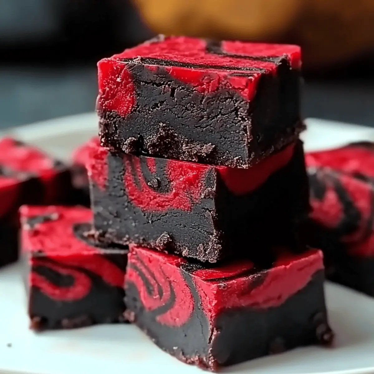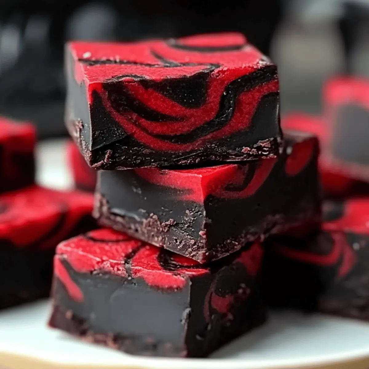 Jump to Recipe Print RecipeAs I stirred together the silky smooth chocolate and sweetened condensed milk, I couldn’t help but feel a thrill of excitement. Here it was, the moment to create my very own Vampire Fudge! This no-bake Halloween delight is a game changer—simple to whip up with just three ingredients and a striking, spooky appearance that’s sure to impress any party guest. The velvety chocolate mingles with vibrant raspberry “blood” swirls, offering a delightful contrast that’s as irresistible as it is fun. Not only is this treat quick to make, but it’s also vegetarian-friendly and perfect for those who want to indulge without a lengthy baking process. Curious to learn how to craft this creepy confection? Let’s dive into the delicious details! Why is Vampire Fudge a Must-Try? Irresistible Taste: The rich chocolate base combined with the fruity raspberry jam creates a delightful sweet-tart flavor that will leave everyone wanting more. Easiest Recipe Ever: With just three ingredients and no baking required, this treat is perfect for beginner cooks and seasoned chefs alike! Visually Stunning: The striking contrast of deep chocolate and vibrant “blood” swirls makes for an eye-catching dessert that takes center stage at any Halloween party. Quick to Prepare: Ready in just minutes plus chill time, Vampire Fudge is a speedy solution for last-minute gatherings or parties. Customizable: Feel free to get creative! Try substituting with white chocolate or using different gel colors to suit any occasion or theme. For more delightful Halloween treats, don’t miss my guide on spooky Halloween desserts. Crowd-Pleasing: Whether it’s a family gathering or a spooky bash with friends, this fudge is sure to impress and satisfy everyone’s sweet tooth! Vampire Fudge Ingredients • Get ready to create a spooky delight with these simple ingredients! For the Fudge Semi-Sweet Chocolate Chips – This forms the rich chocolate base; opt for dark chocolate for an even deeper flavor. Sweetened Condensed Milk – Acts as the sweetener and binds everything together for a creamy texture; you can replace it with evaporated milk for a lighter version. For the Raspberry Swirl Raspberry Jam/Preserve – Provides the fruity tartness and iconic “blood” effect; use seedless jam for a smooth finish. Make sure to gather your items and get ready to whip up this irresistible Vampire Fudge! Step‑by‑Step Instructions for Vampire Fudge Step 1: Prepare the Pan Begin by lining an 8×8-inch square baking pan with parchment paper, allowing some overhang. This will help you easily lift the fudge out later. Ensure the paper covers the bottom and sides of the pan to prevent sticking. Set the pan aside while you prepare the fudge mixture. Step 2: Melt the Chocolate Mixture In a medium saucepan, combine semi-sweet chocolate chips and sweetened condensed milk over low heat. Stir constantly for about 3-5 minutes until the chocolate is fully melted and the mixture is smooth and glossy. Alternatively, you can melt the ingredients in a microwave in 20-second intervals, stirring in between, until creamy. Step 3: Pour into the Pan Once the chocolate mixture is smooth, carefully pour it into the prepared pan. Use a spatula to spread the fudge evenly across the surface, ensuring it reaches all corners. The fudge should be thick and glossy, ready for the next step in bringing this Vampire Fudge to life. Step 4: Prepare the Raspberry Swirl Warm the raspberry jam or preserve in a small microwave-safe bowl for about 15-30 seconds until it is pourable. Drizzle the warmed jam generously over the fudge, creating a striking “blood” effect across the top. Avoid pouring too much in one spot to maintain the swirl effect. Step 5: Create the Swirls With a butter knife or a toothpick, gently swirl the raspberry jam into the fudge without overmixing, as you want to create distinct bloody streaks. Aim for an eye-catching design that enhances the spooky appearance of your Vampire Fudge, ensuring it looks as delightful as it tastes! Step 6: Chill the Fudge Cover the pan with plastic wrap or a lid and place it in the refrigerator for at least 2 hours, or until the fudge is set and firm to the touch. This chilling process solidifies the fudge, making it easy to cut into neat squares later. Step 7: Cut and Serve Once the fudge is completely chilled, use the overhang of the parchment paper to gently lift it out of the pan. Transfer it to a cutting board and slice it into squares with a sharp knife. Aim for clean edges to showcase the beautiful raspberry swirls in your Vampire Fudge, and serve chilled to your eager guests! Helpful Tricks for Vampire Fudge Perfect Swirls: Use room temperature gel food coloring for better control when creating your raspberry swirl. This prevents the colors from muddling together. Melt with Care: Avoid burning your chocolate by melting it over low heat, stirring constantly, or using the microwave in short bursts—no one enjoys gritty fudge! Chill Properly: Ensure your Vampire Fudge is thoroughly chilled for at least 2 hours. This not only helps it set but also makes for cleaner cuts when slicing. Knife Magic: For perfectly smooth edges, run a hot knife through the fudge when cutting. It helps glide through the fudge without tearing. Experiment with Flavors: Feel free to try white chocolate or flavored gel colors for unique twists on your classic Vampire Fudge—your imagination is the limit! Make Ahead Options These Vampire Fudge are perfect for busy home cooks looking to save time during the Halloween season! You can prepare the fudge mixture and pour it into the pan up to 24 hours in advance. Simply cover the pan with plastic wrap and refrigerate until you’re ready to add the raspberry swirl. When it’s time to serve, warm the raspberry jam slightly to make it pourable, drizzle it over the chilled fudge, and create your spooky swirls. This method keeps the fudge just as delicious and visuall