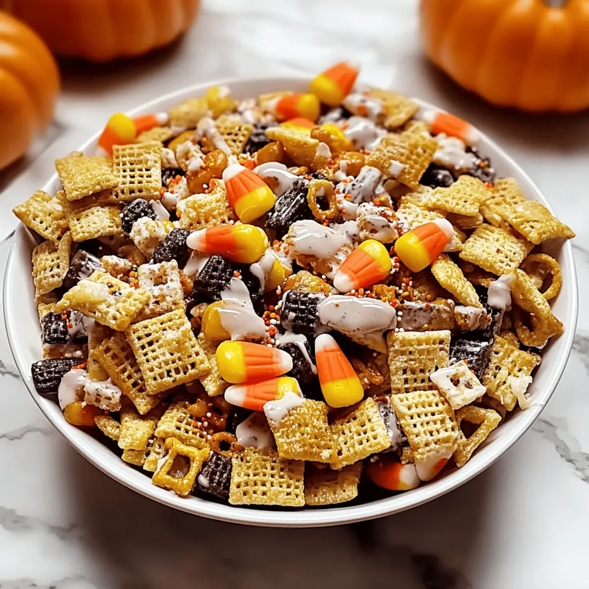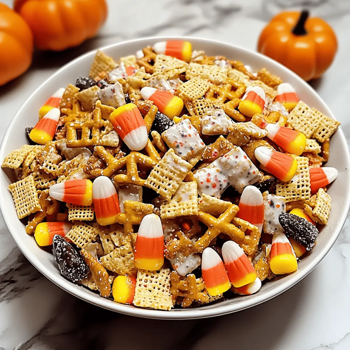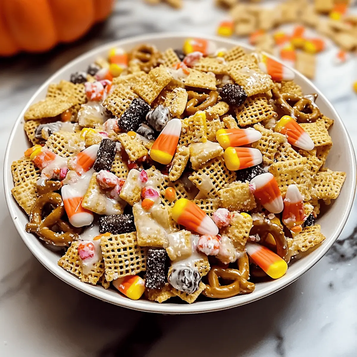 Jump to Recipe Print RecipeAs I stood in my kitchen, surrounded by an array of colorful Halloween treats, I felt a spark of creativity—what if I could capture the essence of this spooky season in a single, irresistible snack? Enter Witches’ Brew Chex Mix, a delightful fusion of crunchy Chex cereal, salty pretzels, and sweet candy corn all wrapped in smooth white chocolate. In just 35 minutes, you can conjure up this festive, no-bake treat that’s sure to delight both kids and adults. Perfect for parties or cozy nights in, this sweet and salty mix is easily customizable with your favorite ingredients, making it a crowd-pleaser for everyone. Why not add your own twist to this magical concoction? Let’s dive into the recipe and brew up some fun! Why is Witches’ Brew Chex Mix a Must-Try? Deliciously Versatile: This Witches’ Brew Chex Mix is easily adaptable, allowing you to swap ingredients based on your preferences. Kid-Friendly Fun: Kids will love getting involved, mixing their favorite treats into this colorful Halloween delight. Time-Saving Treat: Whip it up in just 35 minutes, making it the perfect last-minute snack. No-Bake Convenience: No oven required means mess-free preparation and an instant festive mood. Visual Appeal: The vibrant colors and playful sprinkles create a stunning presentation that’s perfect for any Halloween gathering! Witches’ Brew Chex Mix Ingredients For the Coating • White Chocolate Baking Bars – Adds sweetness and a smooth coating. Substitution: Use white chocolate chips if necessary; however, baking bars melt more smoothly. For the Mix • Corn Chex or Rice Chex Cereal – Provides the crunchy base and structure. Note: Gluten-free options are available with certain Chex brands. • Bite-Size Pretzel Twists – Offers a salty contrast to the sweetness. Substitution: Use gluten-free pretzels if needed. • Raisins – Contributes natural sweetness and chewiness. Substitution: Omit if desired or replace with other dried fruit. • Candy Corn – Adds festive color and sweetness. Substitution: Could use Halloween-themed M&Ms or jelly beans for a similar effect. • Halloween Candy Sprinkles – Provides visual appeal and thematic decoration. Note: Essential for Halloween presentation. Step‑by‑Step Instructions for Witches’ Brew Chex Mix Step 1: Prepare Your Baking Sheet Start by lining a baking sheet with parchment paper to prevent sticking and ensure easy cleanup. This will be where you’ll spread your delectable Witches’ Brew Chex Mix once it’s ready. Prepping the sheet now means you’ll be ready to go once the mixing is complete! Step 2: Melt the White Chocolate In a small saucepan, melt the white chocolate baking bars over low heat. Stir frequently for about 3-4 minutes until the chocolate is smooth and fully melted, making sure not to let it burn. The glossy texture should be velvety and free of lumps, ready to coat your crunchy mix. Step 3: Combine the Dry Ingredients While the chocolate is melting, take a large mixing bowl and combine the Corn Chex or Rice Chex cereal, bite-size pretzel twists, and raisins. Toss these ingredients together gently until everything is well mixed. This will create a delightful base that balances sweet and salty flavors perfectly. Step 4: Coat the Mix with Chocolate Once the white chocolate is melted, pour it over the Chex cereal mixture in the bowl. Using a silicone spatula, stir quickly to ensure the chocolate evenly coats all the ingredients. You want to see a beautiful, shiny glaze covering every piece, indicating they are ready for the next step! Step 5: Add Festive Ingredients Gently fold in the candy corn and Halloween candy sprinkles into the coated mixture. Be careful not to crush the candy corn while mixing. The colors from the candy and sprinkles will add a festive flair, making your Witches’ Brew Chex Mix visually irresistible. Step 6: Spread and Let Cool Carefully spread the chocolate-coated mixture onto the prepared baking sheet, ensuring it’s evenly distributed. Allow it to cool for about 10-15 minutes at room temperature. As it cools, the chocolate will harden, creating a satisfying crunch with every bite of your Witches’ Brew Chex Mix. Step 7: Break Into Pieces and Serve Once the chocolate has hardened, you can break the mix into bite-sized clusters or pieces. Transfer your delightful Witches’ Brew Chex Mix into a serving bowl or an airtight storage container. It’s now ready to be enjoyed at your Halloween gathering or stored for a sweet snack later! Expert Tips for Witches’ Brew Chex Mix Melt Smoothly: Ensure the white chocolate is melted gently over low heat to avoid burning. Stir continuously for a creamy finish; this will coat your Witches’ Brew Chex Mix perfectly. Parchment Paper: Don’t skip using parchment paper! It makes cleanup a breeze and prevents the mix from sticking, allowing for easy serving and storage. Mix Quickly: Work swiftly once you pour the melted chocolate over the mix. The chocolate can harden fast, so quick mixing ensures every piece is coated evenly. Scrape the Bowl: Use a silicone spatula to scrape down the sides of the bowl while mixing. This helps gather all the chocolate and ensures no delicious morsels are left behind. Customize with Care: When swapping ingredients, keep balance in mind. Too much sweet can overpower; aim for a mix of sweet and salty for the best Witches’ Brew Chex Mix experience! What to Serve with Witches’ Brew Chex Mix? As you whip up your festive Witches’ Brew Chex Mix, consider these delightful pairings to create a magical spread everyone will enjoy. Spooky Cupcakes: Topped with colorful frosting and eerie decorations, these treats add a whimsical touch to your Halloween party. Crispy Apple Slices: Crunchy apples drizzled with caramel dip offer a fresh, juicy contrast to your sweet and salty snack mix. Cheesy Pigs in a Blanket: These savory bites provide a delicious balance, mixing warm pastry and gooey cheese w